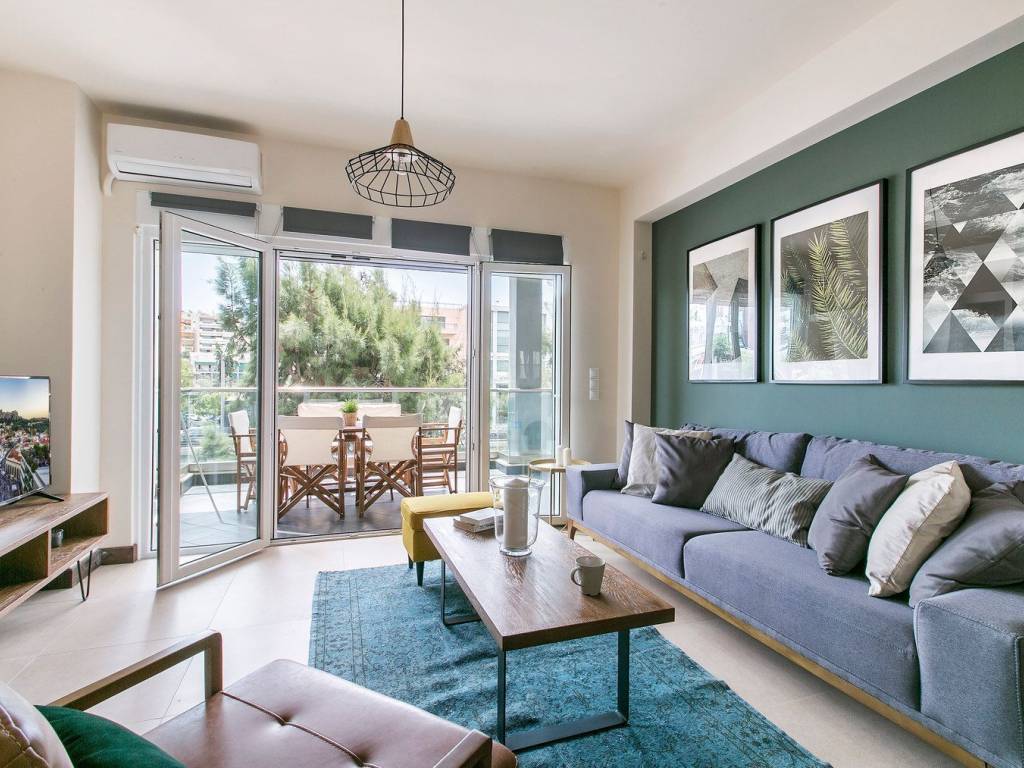 As with any Blueground apartment, you’ll find a thoughtfully designed space complete with beautiful furnitureand a fully equipped kitchenin this two bedroom property. And, thanks to our superior quality mattresses, fully stocked linens, and towels, you can relax knowing you’ll always feel comfortably at home. When you’re ready for some fun, you can take in the Athens vibes or bring the entertainment to you with the premium wireless speaker or smart TV.