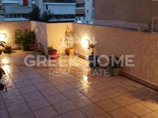 Argyroupoli, Centre - Apartment 113sqm electrical appliances furnished, bedrooms 3, 3rd, fully renovated, year built 1984, renovation year 2018, energy class E, living room, kitchen, bathroom, wc, heating type: central (oil), air condition, parking ground floor, dual aspect apartment, unobstructed view, storage space, solar heater, balconies, large balconies, balcony 40sqm, tents, garden, door screen, night electricity discount rate, secure door, video doorbell.