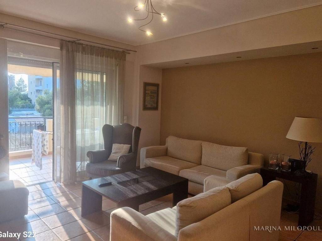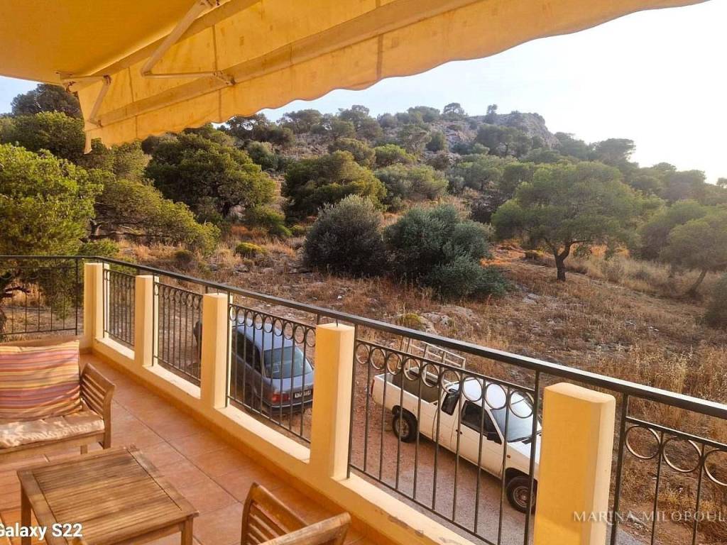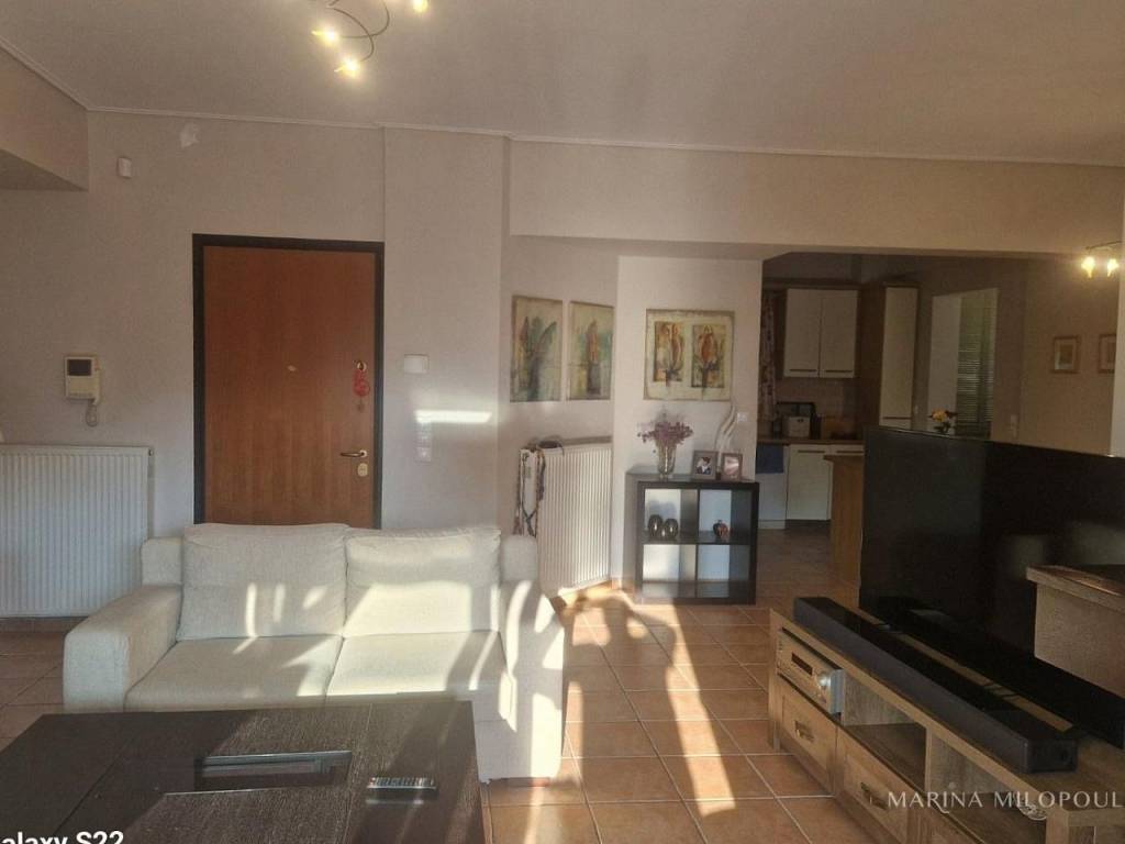 VARI, apartment, 1st floor, 107 sq m with a view of the forest. Comfortable reception area with fireplace, dining room, open plan kitchen with built-in electrical appliances, 3 bedrooms, 1 bathroom, 1 wc and verandas with a view of a pine-covered hill. It features autonomous oil heating, security door, alarm, aluminum frames with double glazing, screens, triple energy solar, boiler, large terrace with BBQ plus auxiliary, awnings, 1 parking space, and 8 sq m storage room. It is part of a well-kept 4-storey apartment building with a garden. Elevated location, with direct access to the natural environment of the forest and close to a local market and public transport, next to Evelpidon Ave. Distance 2.5 km from Varkiza and Varkiza Resort beach, 3.5 km from Voula, 4.5 km from Vouliagmeni and 20 km from the airport.