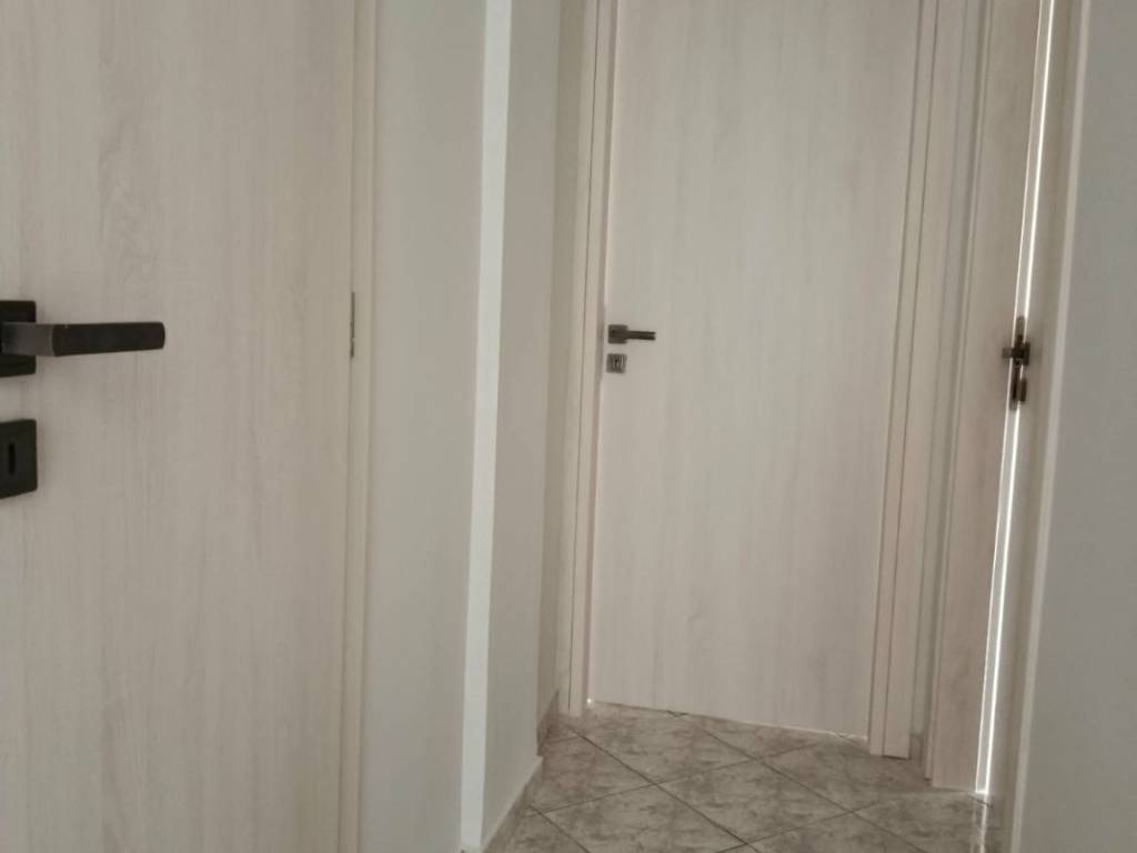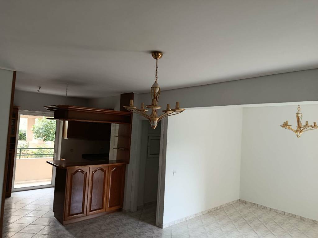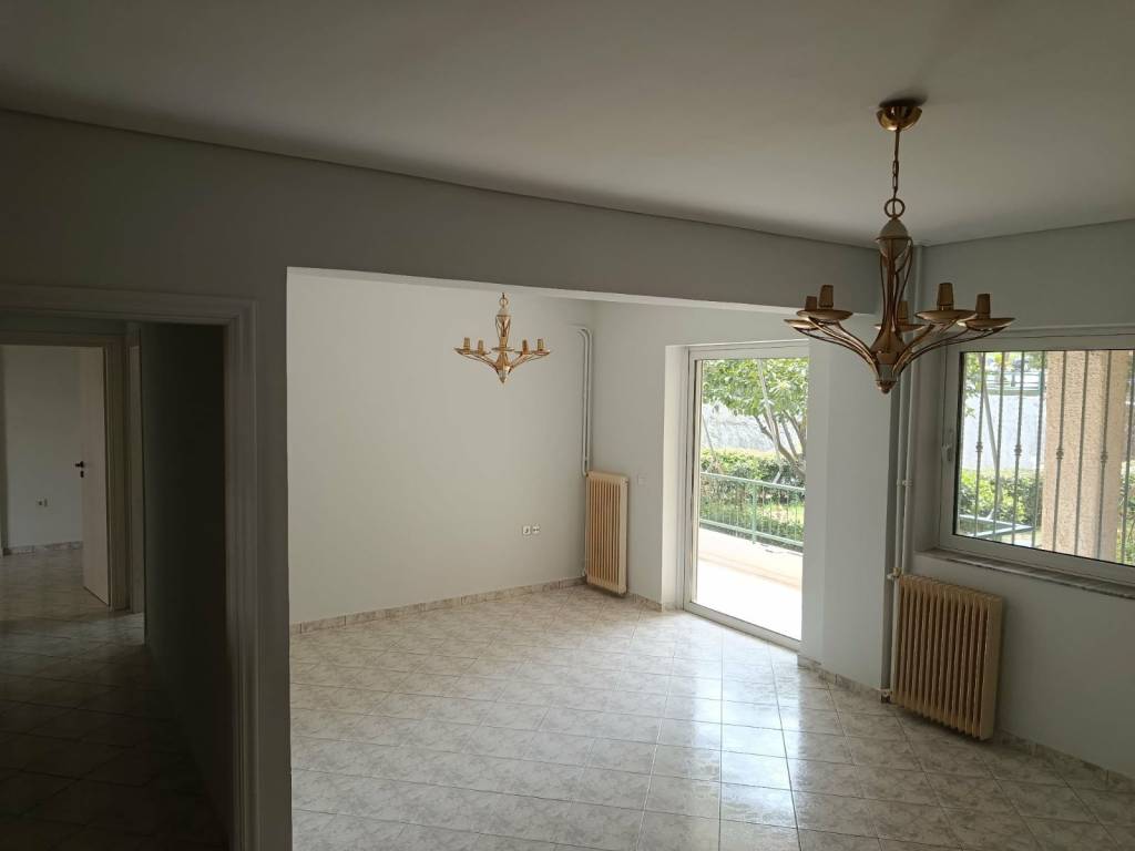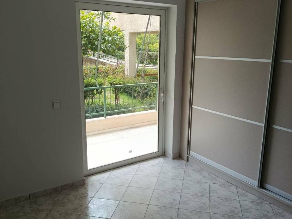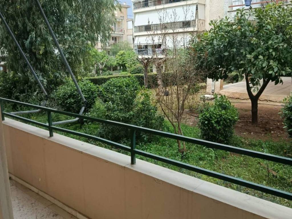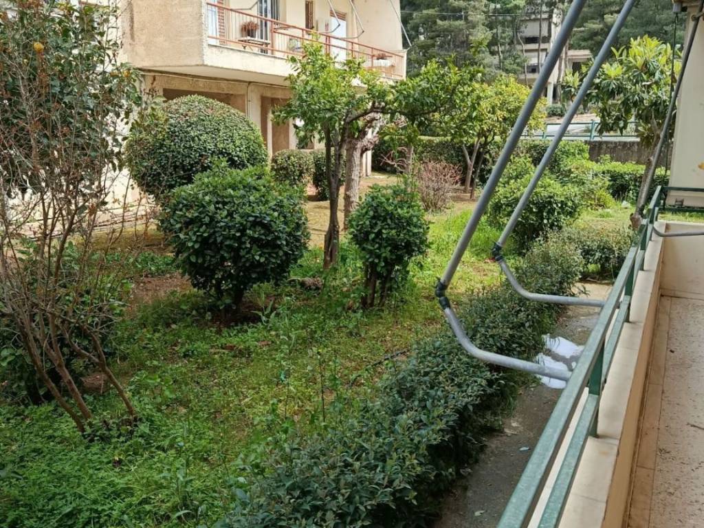 renovated roofed ground floor (3 stairs) 80 sqm in a nice and quiet area of acharnos next to a bus stop 735/878/879 with new solar heater, new cupboards and doors, freshly painted with active oil central heating, views of the green in all windows and two large balconies with awnings in front and back