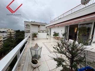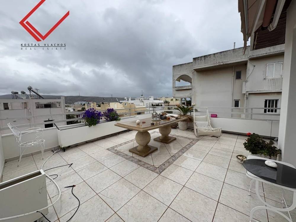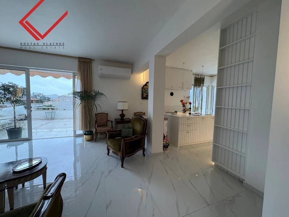 Vari- Varkiza, Varkiza: Apartment for sale 130 sq.m. penthouse on the 4th floor with elevator with a large perimeter balcony of 100 sq.m. It consists of 2 bedrooms, 2 bathrooms, kitchen and living room. Built in 1981 and has 2 pilot parking spaces, 2 electrical appliances storage, painted and has mountain views, double glazed aluminum windows, security door, tile & wood floors, night electricity. The property is located in a privileged spot just a few minutes walk from the sea and the central market of Varkiza. Price €670,000 | Property Code: #7658