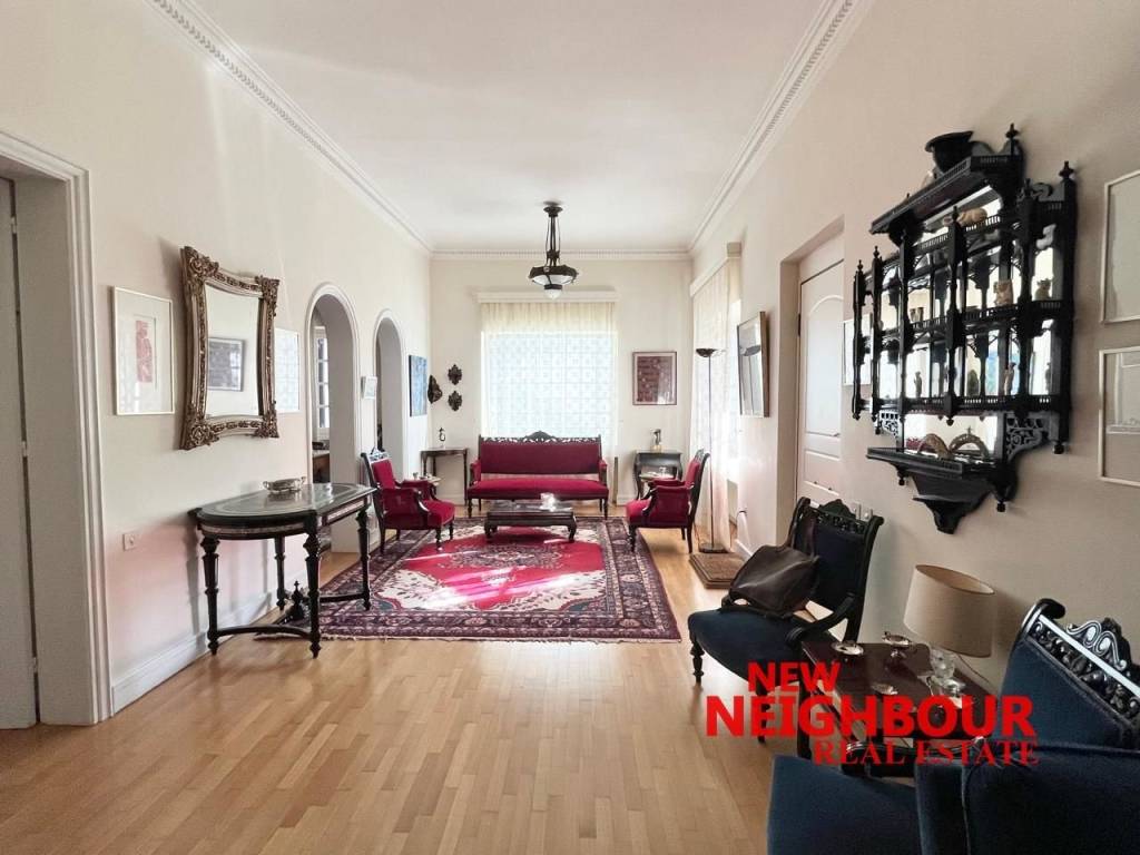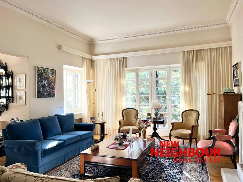 ✨ POLITEIA, KIFISIA | Elegant Garden Residence of 280 sq.m. in a Prestigious Setting Nestled in the serene and highly sought-after enclave of Politeia, Kifisia, this refined 280 sq.m. residence offers a rare blend of timeless elegance, generous proportions, and tranquil green surroundings Arranged over two levels—an elevated ground floor (216 sq.m.) and a semi-basement (64 sq.m.)—this distinguished home is part of a well-maintained two-residence property, delivering privacy, versatility, and a true sense of refined suburban living. Refined Living Spaces The main level unfolds into an expansive reception area featuring a sophisticated living room with fireplace, a formal dining space, and a dedicated home office—ideal for both elegant entertaining and everyday comfort. The independent kitchen, fully equipped with built-in appliances, is complemented by a charming internal patio, enhancing natural light and functionality. The residence features: 3 spacious bedrooms, including 1 master suite with en-suite bathroom 2 full bathrooms A versatile additional two-room space that can be adapted to suit individual needs The lower level hosts a generously sized playroom or guest suite, along with auxiliary spaces, offering flexibility for family living or hosting. Outdoor Living & Ambience Designed to embrace its lush surroundings, the property boasts: Expansive verandas totaling 60 sq.m. A beautifully landscaped garden, ideal for relaxation and outdoor entertaining Corner positioning with dual aspects, ensuring abundant natural light throughout the day ⚙️ Features & Specifications Autonomous oil heating Air conditioning Aluminum window frames with double glazing & insect screens Elegant wooden flooring Security door & alarm system Solar water heater & boiler Storage room (10 sq.m.) 2 open parking spaces Pet-friendly residence Prime Location Ideally positioned in lower Politeia, just 950 meters from the vibrant market of Nea Erythraia, the property enjoys immediate access to premium schools, key transport routes, and upscale amenities. The neighborhood is synonymous with discretion, security, and high-quality living. A Residence of Enduring Value Originally built in 1960 and thoughtfully renovated in 2008, this residence combines solid construction with enduring architectural character. It presents a compelling opportunity for discerning buyers seeking a spacious family home with potential for further enhancement in one of Kifisia’s most prestigious districts. Asking Price: €750,000 (Negotiable). NEW NEIGHBOUR REAL ESTATE AGENCY, contact phone: 2167005657, email: info@newneighbour.gr, website: www.newneighbour.gr