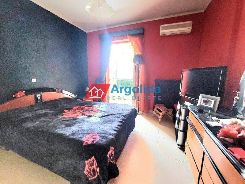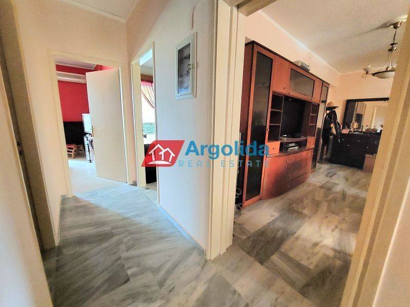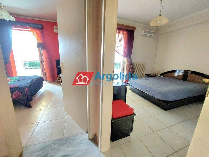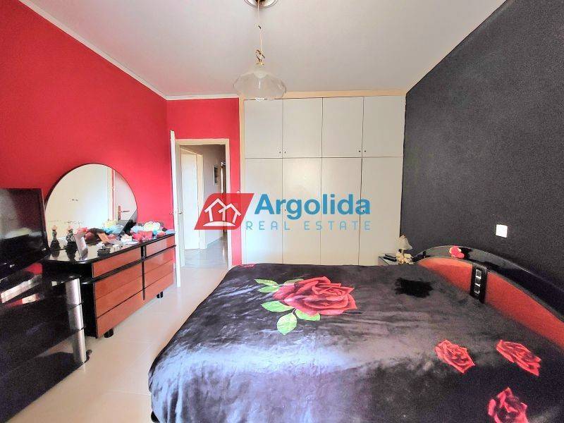 Located in the beautiful and peaceful area near Nafplio, just 3 km from the historic center and the sea, this spacious apartment of 119 sq.m. is available for sale, along with a 30 sq.m. storage room. Built in 2003 and maintained in excellent condition, the property enjoys open views and is situated on the ground floor of a small, well-kept building. It features 3 comfortable bedrooms, a bright living room with a fireplace and direct access to a large veranda, a functional kitchen, 1 main bathroom, and 1 W.C. Additional features include aluminum window frames with double glazing, built-in wardrobes, tile and marble flooring, autonomous oil heating, solar water heater, and air conditioning. This property offers a perfect balance between tranquility and convenience, making it an ideal choice for a permanent residence or a holiday home in one of the most sought-after areas of Argolis.
