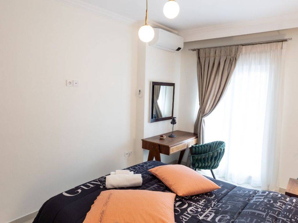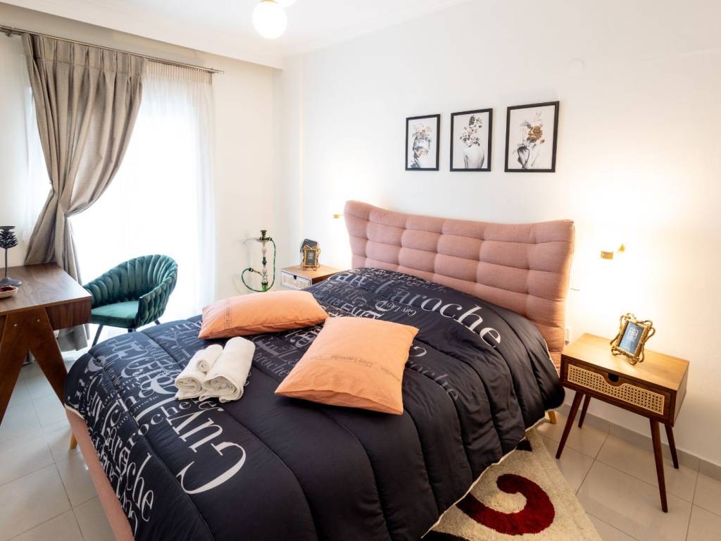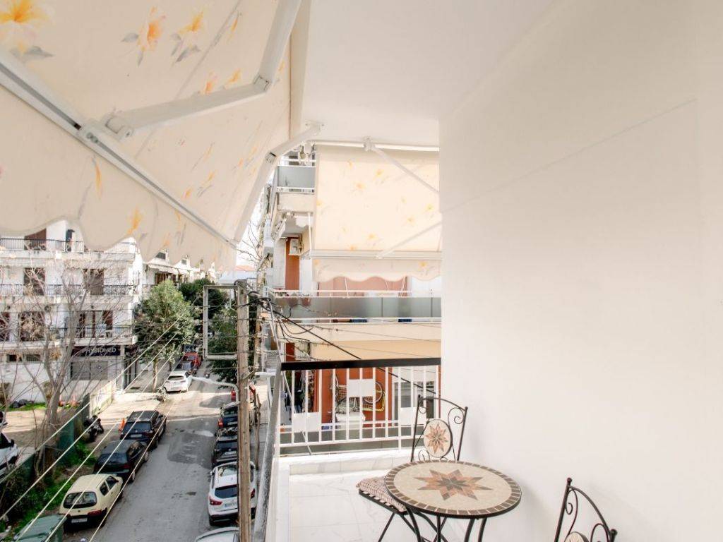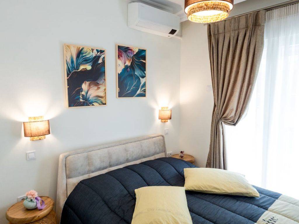 An elegant and fully renovated 80 sq.m. apartment is available for long-term rent, located on the 2nd floor of a well-maintained and quiet residential building, in one of Thessaloniki’s most convenient and up-and-coming areas, just 100 meters from the metro station. The property stands out for its modern design, excellent layout, and abundant natural light, as it is dual-aspect and features a spacious corner balcony, offering an open and relaxing atmosphere. It consists of two comfortable bedrooms with high-quality double beds, a stylish and spacious living room with the option to accommodate additional guests, a fully equipped modern kitchen, and a functional, well-designed bathroom. The apartment is fully furnished and equipped with carefully selected materials and appliances, offering immediate move-in readiness with no additional requirements. Features & Amenities Air conditioning in all rooms Solar water heater with timer Full range of electrical appliances (washing machine, microwave, coffee maker, toaster, etc.) Flat-screen TV High-speed WiFi Complete household equipment (iron, ironing board, vacuum cleaner) Premium-quality linens The location offers direct access to public transportation, shops, restaurants, and essential services, while the city center is only a few minutes away.