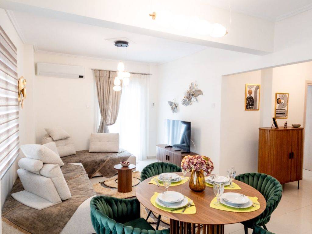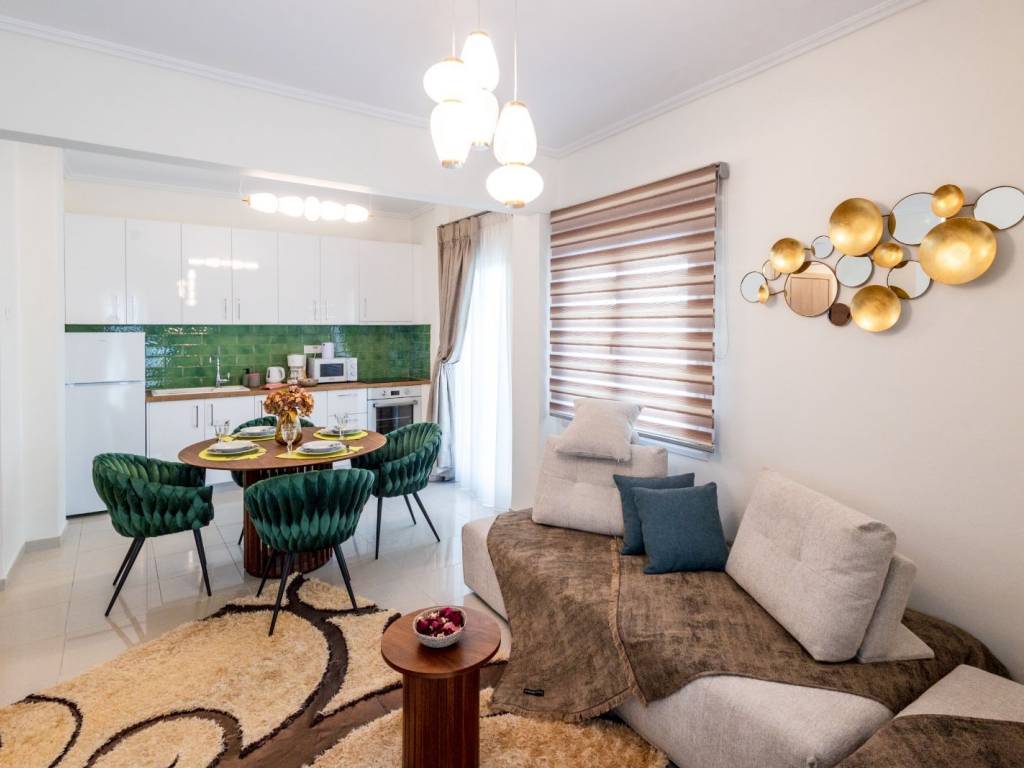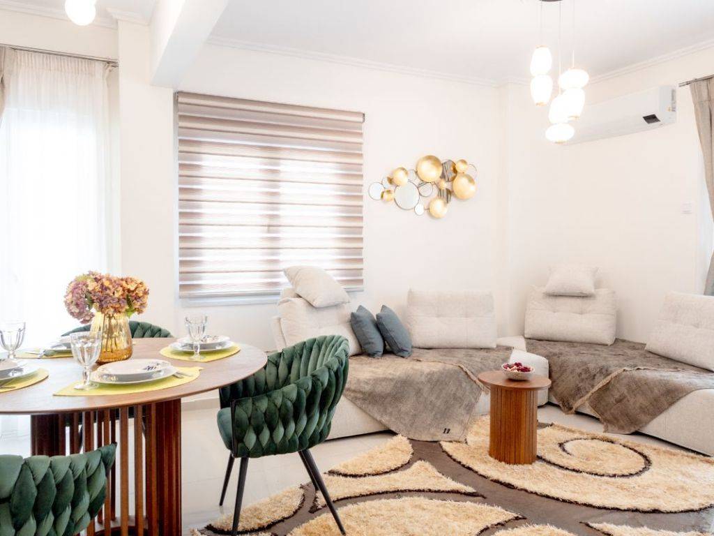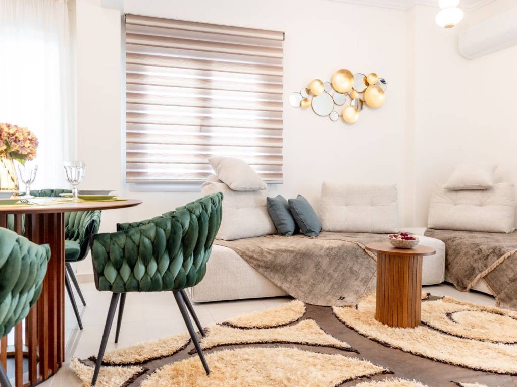 An elegant and fully renovated 80 sq.m. apartment is available for long-term rent, located on the 2nd floor of a well-maintained and quiet residential building, in one of Thessaloniki’s most convenient and up-and-coming areas, just 100 meters from the metro station. The property stands out for its modern design, excellent layout, and abundant natural light, as it is dual-aspect and features a spacious corner balcony, offering an open and relaxing atmosphere. It consists of two comfortable bedrooms with high-quality double beds, a stylish and spacious living room with the option to accommodate additional guests, a fully equipped modern kitchen, and a functional, well-designed bathroom. The apartment is fully furnished and equipped with carefully selected materials and appliances, offering immediate move-in readiness with no additional requirements. Features & Amenities Air conditioning in all rooms Solar water heater with timer Full range of electrical appliances (washing machine, microwave, coffee maker, toaster, etc.) Flat-screen TV High-speed WiFi Complete household equipment (iron, ironing board, vacuum cleaner) Premium-quality linens The location offers direct access to public transportation, shops, restaurants, and essential services, while the city center is only a few minutes away.