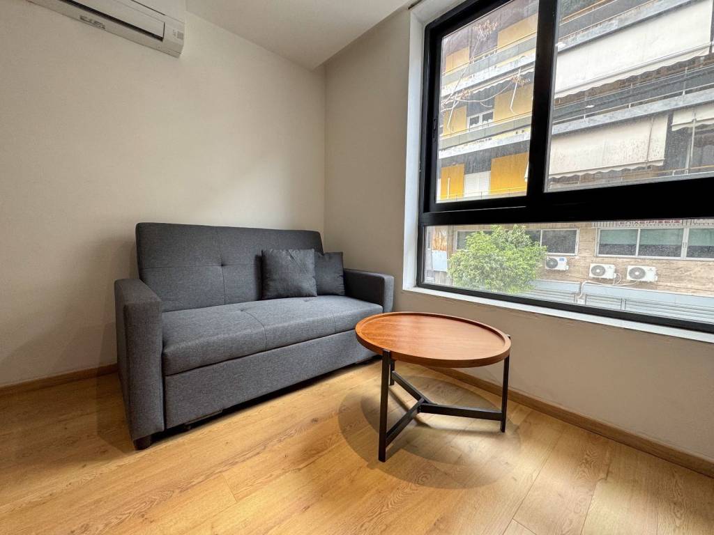 A fully renovated and furnished 32 sq.m. studio apartment is available for rent on the 1st floor, located in the area of Kallithea. The apartment features an open-plan layout, with a partition wall that separates the sleeping area from the kitchen, and also includes a sofa bed. It is fully equipped with all essential electrical appliances, including two air conditioning units, a washer-dryer, a kitchen, and a refrigerator, tv, making it an ideal choice for anyone looking for a ready-to-move-in, furnished home. The minimum lease duration is one year. The monthly rent is €600 and includes electricity, water, and building maintenance (common expenses). Upon signing the contract, one month’s deposit, one month’s rent in advance, and one month’s agency fee plus VAT are required.