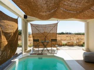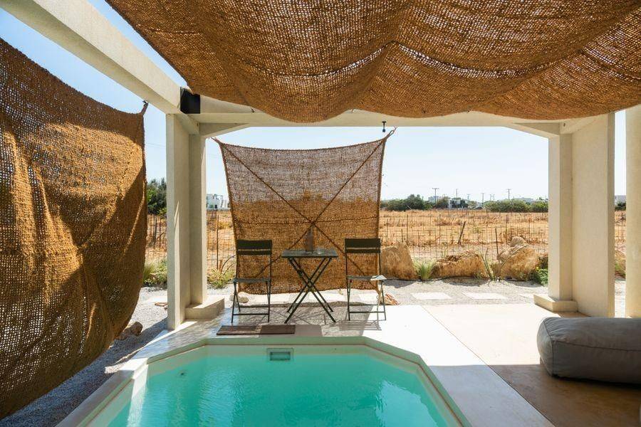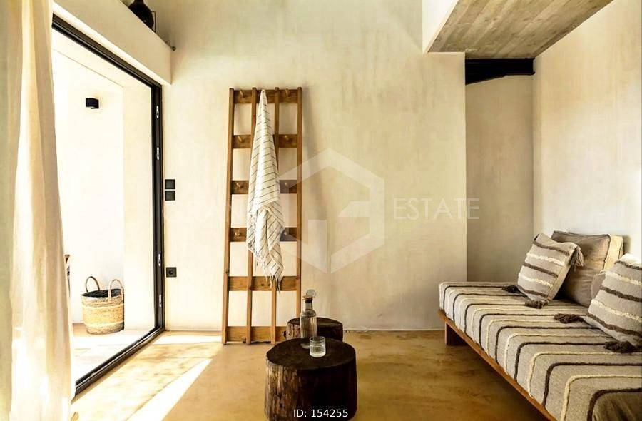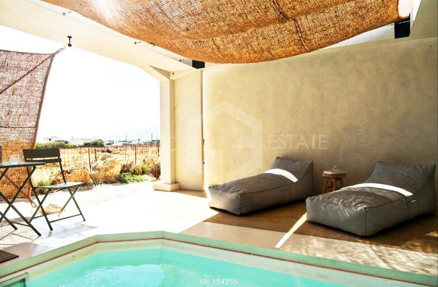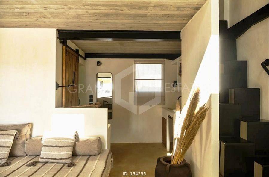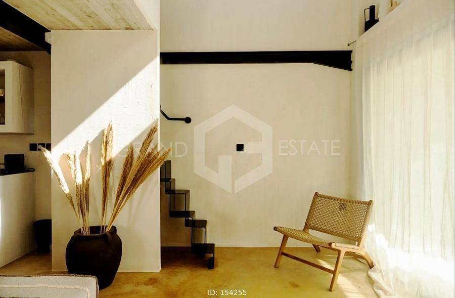 Skyros, Molos - Tangent Maisonette 43sqm fully furnished, bedroom, levels 2, ground floor - loft, newly built, year built 2025, energy class A+, living room, kitchen, bathroom, heating type: autonomous (electricity), air condition, a/c type vrv, parking, quiet, luminous, unobstructed view view, painted, solar heater, balconies, large balconies, balcony 25sqm, garden, built in appliances, aluminum frames, double glazed windows, forged cement floors, luxurious, private pool, internal staircase, pets allowed, residential zone, southern orientation, access from asphalt, investment property, close to sea (up to 200m). Wonderful, bright, quiet and independent maisonette of 43 sq.m. in Molos/Gyrizmata of Skyros just 300 meters from the beautiful and sandy beach of Gyrismata. The maisonette has absolute privacy and consists of a ground floor area of 27 sq.m. which hosts a spacious living room with a large opening to the exclusive use swimming pool of 10 sq.m. and a courtyard of 25 sq.m. with a wonderful view of the picturesque Chora (Town)...the jewel of the island. The maisonette is sold fully furnished with carefully crafted, modern furniture with island details, while the mattresses are from the premium company Cocomat. Ideal for either a permanent residence or a high-yield investment during the summer months.