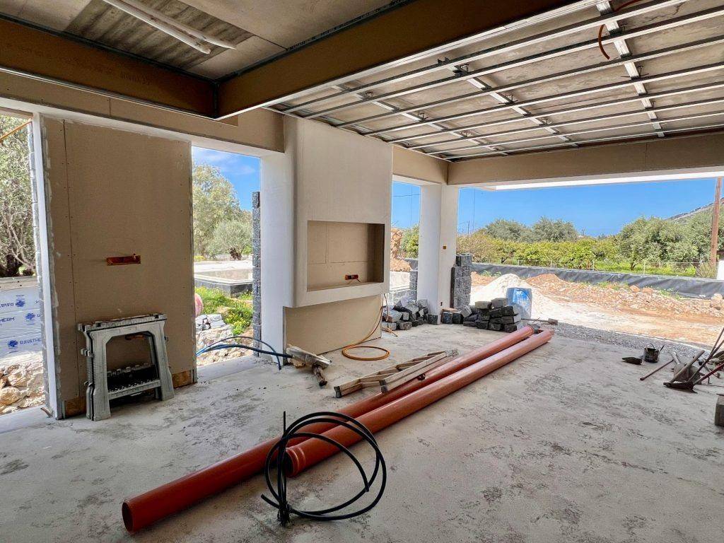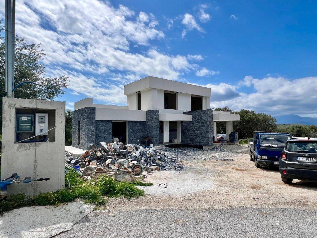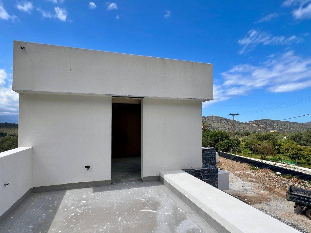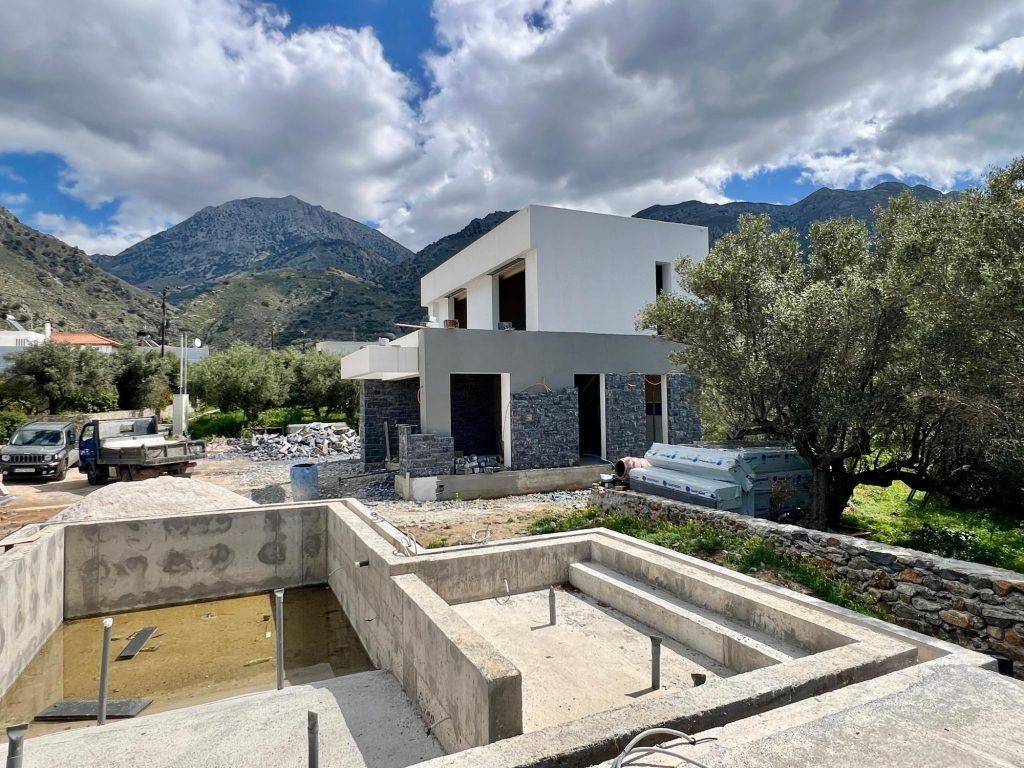 Située en bordure paisible d'un charmant village de Kavousi, au cœur d'une nature luxuriante et d'oliviers, cette magnifique villa neuve de deux étages offre un parfait équilibre entre design moderne et sérénité champêtre. Actuellement en construction, cette propriété d'exception représente une opportunité unique d'acquérir une demeure de prestige. Les travaux de finition seront garantis achevés dans les six mois suivant la vente. La villa sera vendue entièrement finie avec des prestations haut de gamme, mais non meublée, vous offrant ainsi une toile vierge à décorer selon vos goûts. Situé sur un terrain généreux et intime de 900 m², le bien bénéficie d'espaces extérieurs exceptionnels. Le vaste terrain comprendra un jardin paysager, un parking couvert, de spacieuses vérandas et une piscine privée. Depuis le rez-de-chaussée, vous profiterez d'une vue paisible sur les montagnes et la nature environnantes, tandis que l'étage supérieur offre une vue imprenable sur la mer au loin. Malgré cette atmosphère intime et préservée, la villa est idéalement située à seulement 2,5 km de la plage la plus proche et à quelques pas des commerces, cafés et commodités du village. À l'intérieur, la villa offre 130 m² d'espace de vie magnifiquement aménagé et doté de tout le confort moderne, notamment des fenêtres à double vitrage et un système de pompe à chaleur écoénergétique pour un chauffage et une climatisation réversibles toute l'année. Le rez-de-chaussée vous accueille dans une cuisine ouverte spacieuse sur le séjour, donnant accès à la terrasse et à la piscine. Ce niveau comprend également des toilettes invités et une chambre double avec salle de bains privative. À l'étage, vous trouverez deux autres chambres doubles lumineuses et une salle de bains. Ces deux chambres bénéficient d'un accès direct à deux grandes terrasses offrant une vue imprenable. Cette villa, conçue avec soin, est une véritable opportunité de vie, prête à être personnalisée. Le village compte de nombreux commerces et services ouverts toute l'année. La superbe plage de Tholos est à seulement 3 minutes en voiture. Kavousi est un charmant village traditionnel situé au 25e kilomètre de la route Agios Nikolaos-Sitia. L'aéroport international d'Héraklion est à environ une heure de route.