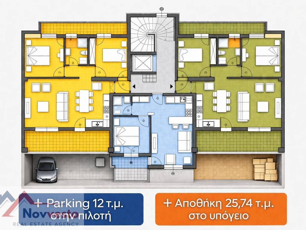 For Sale – Modern 1-Bedroom Apartment in a Newly Built Development Agios Georgios | Larissa, Greece Price: €84.000 Net Surface: 40 sq.m. The Property Located in a modern two-storey building currently under construction (works starting Spring 2026), this 1-bedroom apartment is situated in a quiet and developing area of Larissa. Designed with functionality and comfort in mind, the property offers a well-planned layout and a private outdoor space, making it ideal for both personal use and investment. ✨ Key Features • 1 bedroom • Open-plan living room – kitchen • 1 bathroom • Balcony total 6.26 sq.m. • Front balcony + semi-outdoor space • Bright and functional layout Additional Benefits • Private parking space in pilotis (12.15 sq.m.) • Spacious underground storage room 25.74 sq.m. (with electricity) • Pre-installation for electric vehicle charging • Elevator with access to basement • Dual vehicle entrance/exit for easy access Energy Efficiency & Construction • Underfloor heating with individual natural gas boiler • Solar water heater + boiler for hot water • External thermal insulation (8–10 cm) • Energy-efficient window frames with double glazing • Full thermal insulation (floor & roof) • High-quality modern construction standards Location Situated in a peaceful area of Agios Georgios, with easy access to: • schools • public transport • main roads and essential amenities Why it stands out ✔ Ideal for investment or first home ✔ Low energy consumption ✔ Includes storage & parking ✔ Ready for modern living (EV charging infrastructure) For more information or to schedule a viewing, contact us: Novvesto Real Estate – Odysseas Grammenos ◉ Property Code: LAR9021