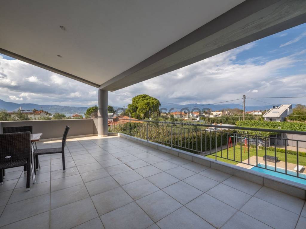 Located in Rio, in the popular seaside area of Aktio, in a quiet and highly privileged location, an exceptional detached two residence property of 308 sq.m. is offered for sale on a 850 sq.m. plot. The property consists of two fully independent residences, offering functional autonomy of levels and beautifully landscaped outdoor areas with swimming pool. The elevated ground floor residence is autonomous with a total surface of 120 sq.m. It features a spacious living room with fireplace, independent fully equipped kitchen, three bedrooms and two bathrooms. The spaces are bright and functional with direct access to the outdoor area, while a large veranda overlooks the pool and garden, offering comfortable everyday living. It is offered fully furnished. The first floor residence is designed in maisonette style with an elegant internal staircase and consists of 120 sq.m. plus an additional upper level of 51 sq.m. It forms a second complete residence including living room with fireplace, kitchen, three bedrooms and two bathrooms. It also features a large veranda with views to the swimming pool, the surrounding area and the Rio Antirrio Bridge. It is fully furnished. The basement includes storage areas of 51 sq.m. as well as a configured auxiliary space with laundry room. There are two outdoor showers for pool use and an external WC, while the property also offers outdoor parking space within the plot. The outdoor area is particularly well designed and includes a heated swimming pool with jacuzzi and salt system, offering a high level of living and year round usability. Additionally, photovoltaic panels are installed enhancing the energy efficiency of the property energy class B and reducing operating costs. The contract remains in force for another 11 years with guaranteed income which, in addition to free electricity, will generate approximately 50,000 euros in total. The residence was constructed in 2002, the ground floor was completed in 2002 and the upper floor in 2005. It features autonomous oil heating, five air conditioning units, aluminum frames with double glazing and tiled floors. The property is offered fully furnished and equipped with branded furniture, paintings, garden machinery and generally allows immediate occupancy the day after the contract. It has a fully updated legal and technical file and the possibility of signing the final contract within 15 working days. Aktio is one of the most popular seaside areas of Rio, known for its beautiful beach, traditional fish taverns and direct access to the sea. The area combines a quiet residential character with high quality living and is located at a short distance from the Rio junction and the University of Patras. The Rio Antirrio Bridge provides direct connection to Central Greece, while the wider area includes hotels, cafes, restaurants and tourist infrastructure, making the location ideal for permanent residence, holiday home or investment use. Property Code 4083 Price 750.000 € Exclusive listing