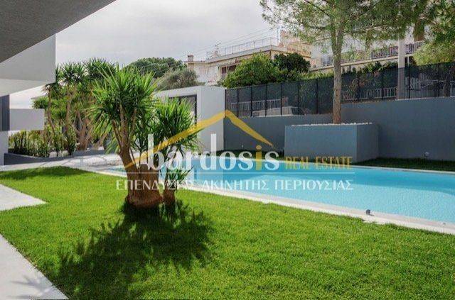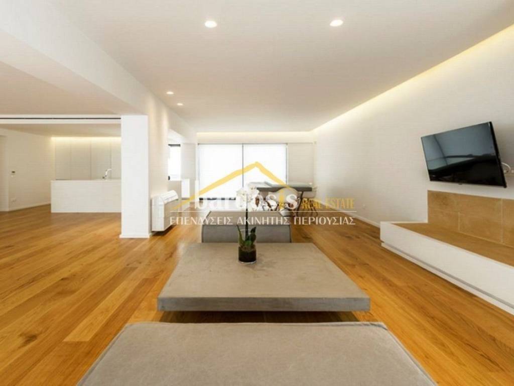VOULIAGMENI, Kavouri: Apartment 210 sq.m., 1st floor, fully renovated in 2019, furnished, luxurious, modern, bright, in excellent condition, features: large living and dining area with oak floors and fireplace, open-plan kitchen with built-in electrical appliances, wc, cloakroom, 3 master bedrooms with their own bathrooms, built-in wardrobes and oak floors. Also features: security door, autonomous electric heating, air conditioning cooling - heating, solar water heater, aluminum frames, double glazing, screens, large verandas, swimming pool, garden, 1 pilot parking space (Code: M-17058) Parking, WC, refurbished, individual heating, porch, floors (Floors) oak, double glazing, energy class A, solar, situation (Status) excellent, garden, air conditioning, kitchen (Kitchen) open - Single, pool, luxury residence, security door, frontage, electricity three phase current, sieves, bright