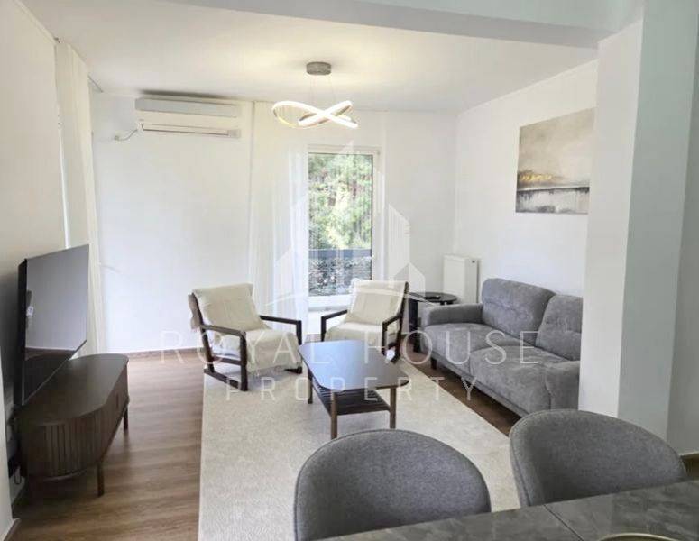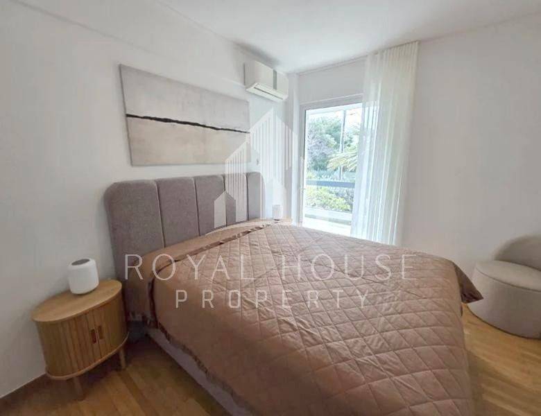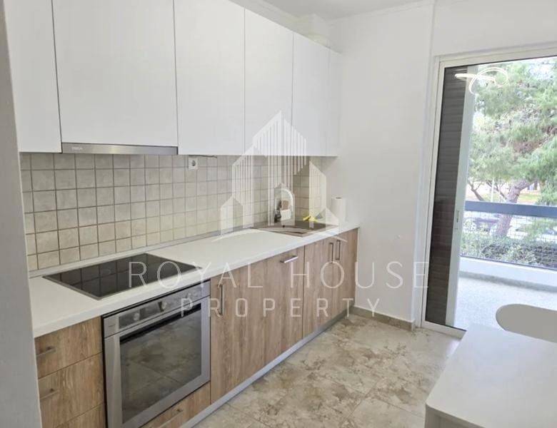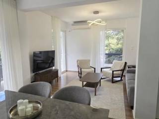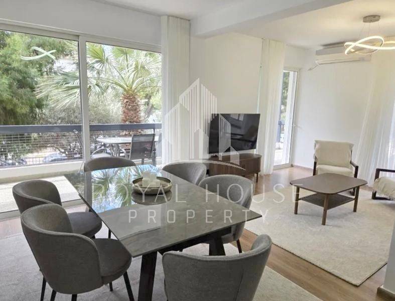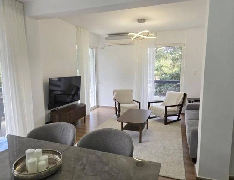 Voula, Centre - Apartment 100sqm fully furnished, bedrooms 2, levels 1, 1st, renovated, year built 1978, renovation year 2025, energy class C, living room, kitchen, bathroom, heating type: autonomous (natural gas), air condition, quiet, dual aspect apartment, luminous, frontage, painted, balconies, elevator, aluminum frames, double glazed windows, secure door, pets allowed, residential zone, special offer.