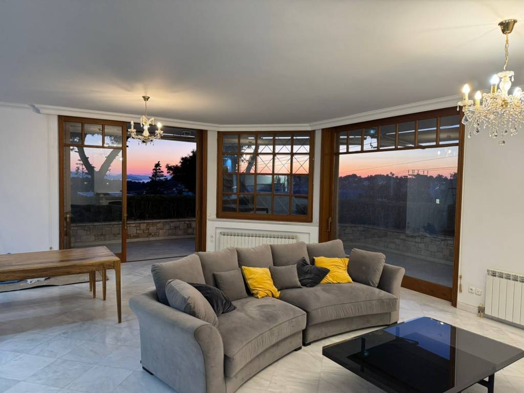 FOR SALE: Luxury sea view residence in Vouliagmeni, located in a prime area of the Athenian Riviera. This is a unique property with a total surface of 450 sq.m., offering the potential to be configured into two independent residences. It is ideal for extended families or for use as a main residence with a guest house. The main living areas total 380 sq.m. and are arranged across multiple levels following the natural slope of the hill, ensuring privacy and comfort. The property is set on a corner plot. The residence includes six bedrooms, two spacious living rooms, two fully equipped kitchens, and five bathrooms. Both living units feature large bathrooms with round jacuzzis. Outdoors, the property stands out with two beautifully landscaped gardens, a barbecue area, and large balconies with electric shutters, offering unobstructed views of the sea and stunning sunsets. Additionally, there is a specially designed safe room. The property features high-quality materials throughout, including Dionysos marble in both interior and exterior spaces, wooden parquet flooring in the bedrooms, and solid wood frames, doors, and wardrobes made from selected timber (peach pine). The floor-to-ceiling balcony doors allow abundant natural light and enhance the sense of space and views. The residence offers two independent entrances and is equipped with elevator, solar water heating, boiler system, air conditioners fireplace and autonomous oil heating. It also includes storage spaces, a closed garage for two cars, and an additional outdoor parking space. An excellent choice for a high-spec residence in Vouliagmeni, one of the most sought-after locations of the Athenian Riviera, with easy access to the sea and all local amenities. Ideal both for private use and as an investment opportunity.