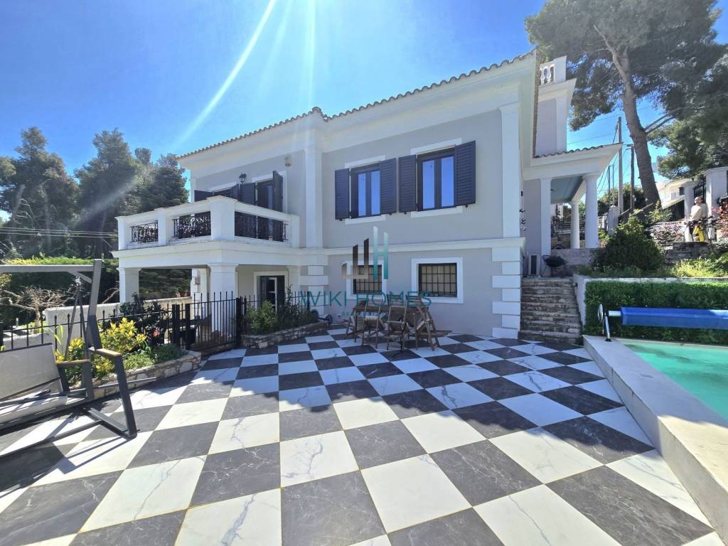 Detached house For sale, floor: Semi-basement, Ground floor (2 Levels), in Anoixi. The Detached house is 500 sq.m. and it is located on a plot of 700 sq.m.. It consists of: 5 bedrooms (1 Master), 3 bathrooms, 2 wc, 2 kitchens, 2 living rooms and it also has 3 parkings (3 Closed). The property was built in 1991 and it was renovated in 2023. Its heating is Personal with Liquid gas, Heating per level, Air conditioning are also available, it has Alluminum, Wooden frames, the energy certificate is: C and its floors are Wooden. The property's status is: New development, Excellent condition, it has Mountain, Nature view. The Detached house is Bright, Sunny, Airy, Luxury, Minimal design and it also has the following unique features and advantages: Window Screens, Storage, Attic, Internal staircase, Swimming pool, Garden, Security door, Security alarm, No shared expences, BBQ, Three phase current, Pets allowed, Quiet neighborhood, Porch, Gym, Office room. Price: €950.000. Wiki Homes, contact phone: 6940008282, email: info@wikihomes.gr, website: