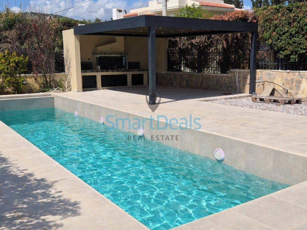 Villa for Sale 350 sq.m. | Kalivia Thorikou – Lagonisi | €950,000 A luxurious villa of 350 sq.m. is offered for sale, set on a 507 sq.m. plot, in the area of Kalivia Thorikou – Lagonisi. The property is developed across 4 levels (ground floor, 1st, 2nd, and 3rd floor), offering comfort and high-quality living. The villa comprises: 3 bedrooms (including 1 master) 4 bathrooms 2 kitchens 4 living areas 3 covered parking spaces Built in 2004 and fully renovated in 2026, the property is in excellent condition with a modern aesthetic. Technical features & equipment: Autonomous heating with heat pump (per level) Air conditioning Aluminum frames with double glazing Energy certificate: Class B Flooring: tiles, wood, marble, and stone Additional features & amenities: Elevator and internal lift Internal staircase Swimming pool and garden BBQ area Playroom and office Staff room Security door, video intercom, and alarm system Electrical appliances, insect screens, awnings, electric shutters Night-rate and three-phase electricity Internal courtyard and trees No common expenses The property is front-facing, bright, airy, and dual-aspect, detached on all sides, and located near the sea. It enjoys a west-southwest orientation with unobstructed panoramic views of the sea, mountains, and greenery. Ideally located close to transport, market, schools, squares, churches, supermarkets, and dining options. Distances include: 3 minutes from the beach 1 minute from the town center 200 m from supermarket 12 minutes from hospital/health center 20 minutes from suburban railway and airport Suitable for holiday home, professional use, short-term rental, as well as investment or Golden Visa. Price: €950,000 The dot on the map does not indicate the exact location of the property, but rather close to it. See other properties at www.smartdeals.gr. In order to visit the property, it is necessary to present the identity card and the VAT number of the interested buyer/tenant, based on Law 4072/11.4.2012. Smart Deals Real Estate, 2106080500 / realestate.smartdeals@gmail.com