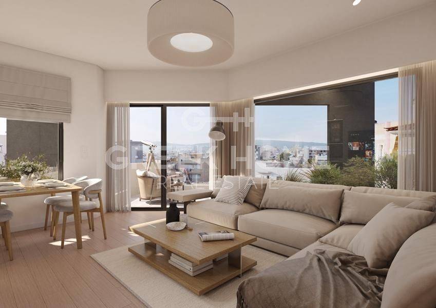 Petroupoli, Centre - Floor Apartment 83sqm bedrooms 3, 2nd, newly built, year built 2026, energy class A+, living room, kitchen, bathroom, wc, heating type: autonomous (heat pump), air condition, a/c type fan coil, parking ground floor, quiet, dual aspect apartment, luminous, corner, unobstructed view view, frontage, painted, electric roller shutters, storage space 22sqm, solar heater, external thermal insulation, balconies, large balconies, elevator, aluminum frames, double glazed windows, door screen, ceramic tiles floors, separate kitchen, secure door, video doorbell, luxurious, pets allowed, east-southern orientation, close to school (up to 200m), close to super market (up to 100m), close to market (up to 100m), close to square (up to 100m).