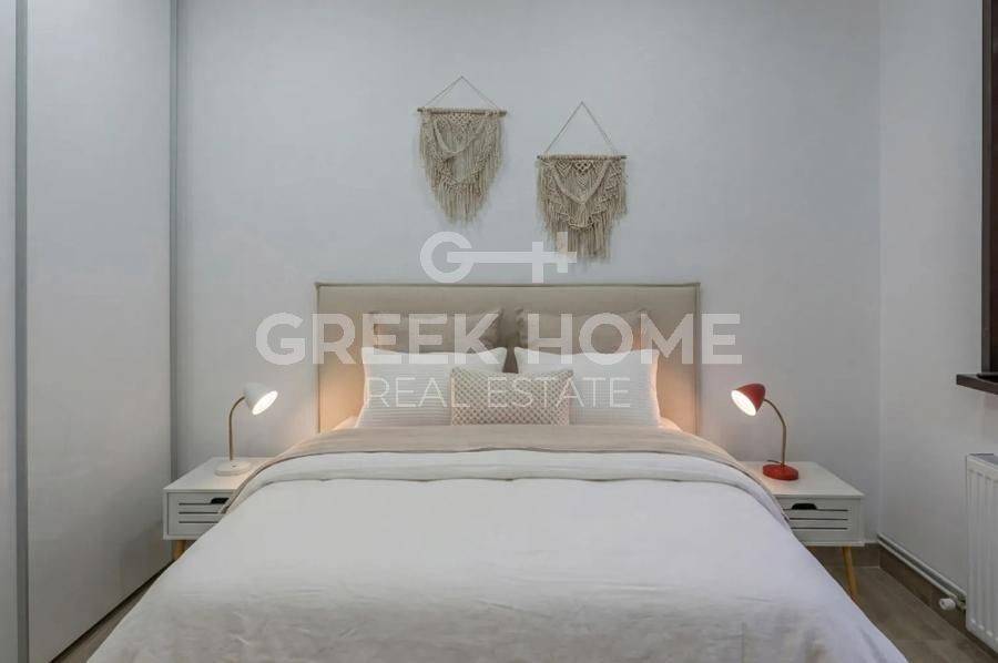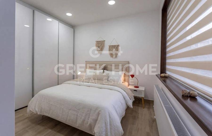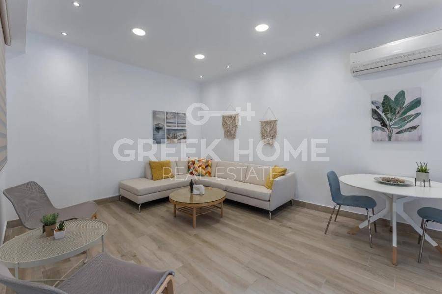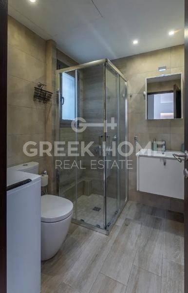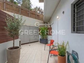 Glyfada - Apartment 57sqm fully furnished, bedroom, ground floor, newly built, year built 2012, energy class D, living room, kitchen, bathroom, heating type: autonomous, air condition, quiet, luminous, painted, electric roller shutters, solar heater, balconies, built in appliances, aluminum frames, double glazed windows, door screen, wood & tile floors, secure door, video doorbell, luxurious, satellite, internet, pets allowed, investment property, close to sea (up to 1000m), close to market (up to 500m).