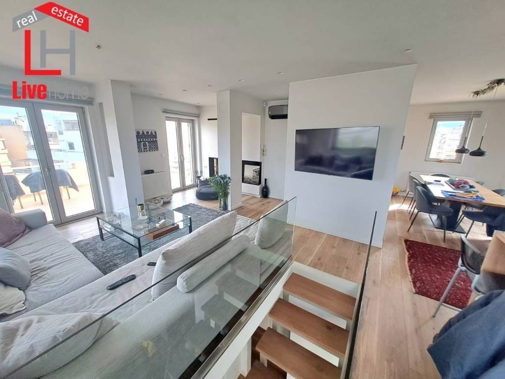 Paleo Faliro: For sale is a luxuriously renovated and EXTREMELY BRIGHT maisonette of 138 sq m.(3 levels) on the 7th floor WITH A MAGICAL VIEW.It has an elevator and individual gas heating.It consists of 3 large bedrooms, 1 of which is a master and 2 bathrooms on the 7th with 87 sq m.inside and a 28 sq m perimeter balcony, and 1 modern living room-kitchen on the 8th with 51 sq m.inside and a 68 sq m perimeter balcony.It has the exclusive use of the entire staircase on the 7th and 8th floors of 17 sq m and retains a right of elevation, on the 9th on which there is a 4 sq m storage room.In 2020, a total renovation was carried out EVERYWHERE, even the plumbing-sewerage, as well as its electrical systems. It is fully and luxuriously furnished and equipped with electrical appliances, built in 1974, painted, next to the sea and has energy-efficient aluminum frames with thermal breaks with double glazing and screens, a 20sqm parking space, air conditioning in all areas, energy class B, wood-imitation tile floors inside and outside the house, ENERGY-EFFICIENT fireplace, alarm and solar water heater.It is located in an extremely functional location, next to the sea, next to Poseidonos and in visual contact with STAVROS NIARCHOS FOUNDATION FOR CULTURE and BATTLESHIP AVEROF. EXCLUSIVELY FROM THE REAL ESTATE AGAPIDIS E.E. ATHENS - CORINTH.Price 820,000€ |Property Code: #GPA 21021