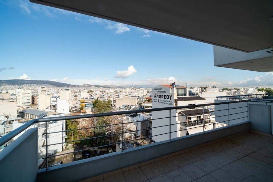 Piraeus, Kaminia - Apartment 101sqm bedrooms 3, levels 1, 8th, penthouse, newly built, year built 2009, energy class C, living room, kitchen, bathroom, wc, heating type: autonomous (oil), parking open space, quiet, dual aspect apartment, luminous, panoramic view, frontage, storage space 3sqm, balconies, large balconies, balcony 16sqm, elevator, aluminum frames, double glazed windows, door screen, ceramic tiles floors, handicap ramp, secure door, video doorbell, residential zone, north-western orientation, access from asphalt, close to sports facilities (up to 100m), close to bus stop (up to 200m), close to park (up to 100m), close to metro/train (up to 500m), close to school (up to 100m), close to super market (up to 100m).