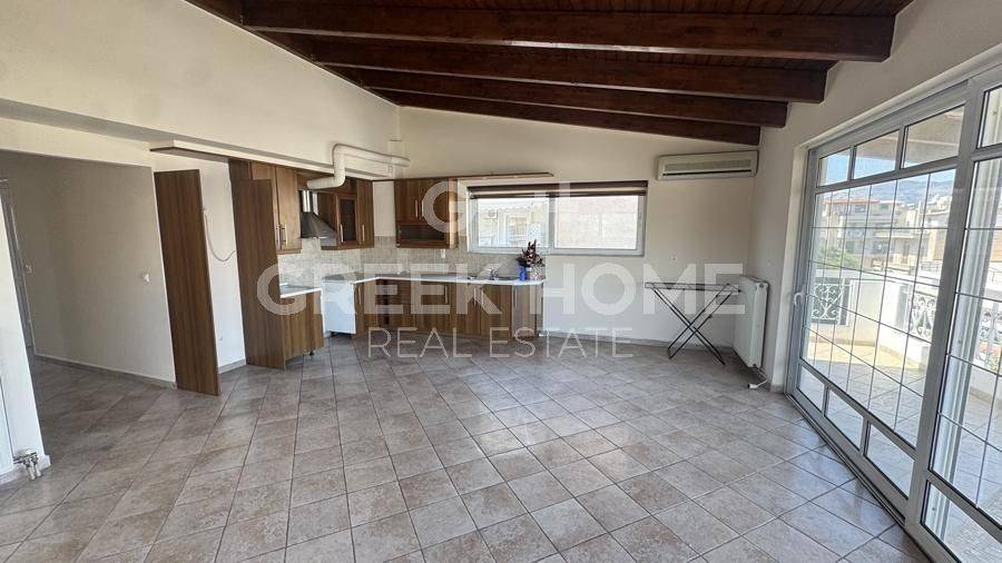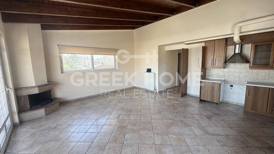 Metamorfosi, Centre - Apartment 80sqm bedrooms 2, 3rd, penthouse, very good condition, year built 2013, energy class B, living room, kitchen, bathroom, wc, heating type: autonomous (natural gas), air condition, parking ground floor, quiet, luminous, corner, unobstructed view, frontage, fireplace, large balconies, elevator, garden, aluminum frames, double glazed windows, ceramic tiles floors, secure door.