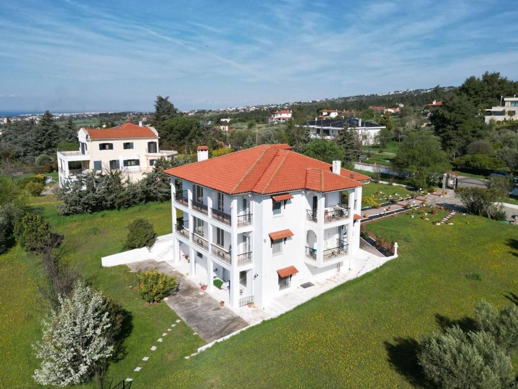 An exceptional three-level residence with a total area of 330 sq.m., on an impressive 5,500 sq.m. plot, is offered for sale in one of the most up-and-coming areas of Thessaloniki. It is a bright, dual-aspect property with large terraces and beautiful views, offering comfort and functionality, with a total of 8 bedrooms, 3 bathrooms and 3 WCs, two spacious living rooms with dining area, as well as two fully equipped kitchens. On the ground floor there is an additional laundry area, while the residence includes a fireplace and individual oil heating. The wooden frames and the marble and wooden floors add a timeless character and warmth to the space. The property requires partial renovation, yet offers significant configuration potential, including division into independent apartments, making it ideal both for owner-occupation and for investment use. The outdoor area is complemented by a large and beautiful garden with olive trees and fruit trees, ensuring privacy, tranquility and a high quality of life, while it is an excellent choice for a family or for the creation of a residential complex. Thermi is located in the southeastern part of Thessaloniki, at a distance of approximately 15 kilometers from the city center. Unique Features: Thermi is now one of the most affluent suburbs of Thessaloniki, having developed significantly in recent years. The area consists of several newly built properties as well as townhouse complexes. In the wider area, residents can find nearby the “Mediterranean Cosmos Mall,” one of the city’s largest shopping centers, offering a variety of options to visitors. In addition, several private schools are located in the area, such as the Vasileiadis Educational Institutions. In Thermi there is a dam that offers residents a breath of greenery, highlighting the area, as it features a rich natural environment and is ideal for short getaways outside the city. Another historic landmark of the area is the Baths of Thermi, which in the coming years may be upgraded through a project aimed at their development. Accessibility: Close to Thermi run National Road 16 and Motorway 24, which connect Thermi with the rest of Thessaloniki. OASTH serves the area with two bus routes. Investment Potential: The area’s population is steadily increasing, attracting a large number of investors.