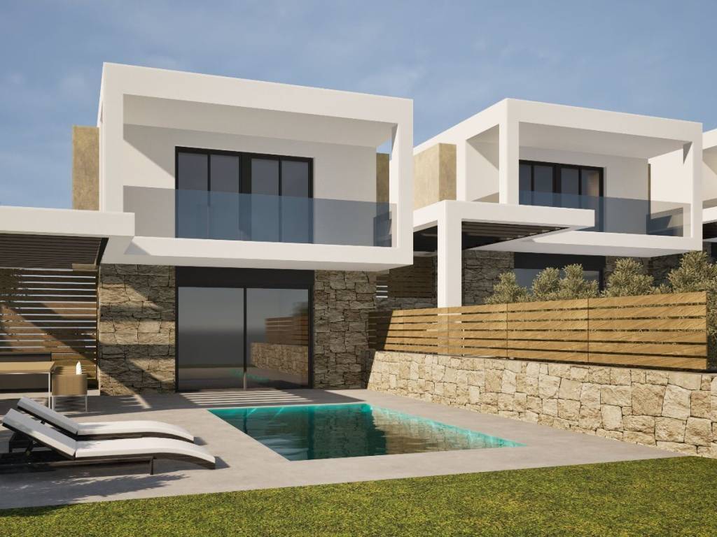 EXCLUSIVE GOLDEN VISA INVESTMENT: MODERN SEA-VIEW VILLAS IN KALANDRA Discover the perfect synthesis of contemporary luxury and Mediterranean charm. Set against the beautiful backdrop of Kalandra in Kassandra, Halkidiki, this newly designed complex of premium villas offers an exceptional lifestyle and a highly coveted investment opportunity. Fully eligible for the Greek Golden Visa program and uniquely situated inside the city plan, these homes deliver unparalleled peace of mind alongside breathtaking sea views. PROPERTY OVERVIEW Living Space: 120 sq.m. per villa Location: Kalandra, Kassandra (Inside City Plan) Investment Status: Golden Visa Eligible Outdoor: Private Swimming Pool & Landscaped Garden Views: Unobstructed Sea Views ARCHITECTURAL BRILLIANCE & FEATURES Striking Facades: A beautiful contrast between the warm, earthy natural stone of the ground level and the crisp, minimalist white volumes of the upper floors. Light-Filled Interiors: Expansive floor-to-ceiling sliding glass doors erase the boundaries between inside and out, flooding the interior with natural sunlight. Unobstructed Views: Elegant glass balustrades on the upper-level balconies ensure your panoramic views of the sea are never interrupted. THE ULTIMATE OUTDOOR OASIS Private Swimming Pools: Each home boasts a beautifully illuminated, private pool surrounded by sleek tiling and manicured lawns. Shaded Lounging: Custom-designed modern pergolas extend from the home, providing the perfect shaded area for al fresco dining. Smart Tiered Layout: The complex utilizes beautiful natural stone retaining walls to subtly tier the properties, maximizing privacy and ensuring every villa enjoys the sea breeze. Premium Parking: Spacious, pergola-covered private parking areas easily accommodate multiple vehicles right at your doorstep. Located in the charming area of Kalandra, you are perfectly positioned to enjoy the tranquility of nature while remaining close to the vibrant beaches of the Kassandra peninsula. Contact us today for floor plans, pricing, and to secure your Golden Visa investment!