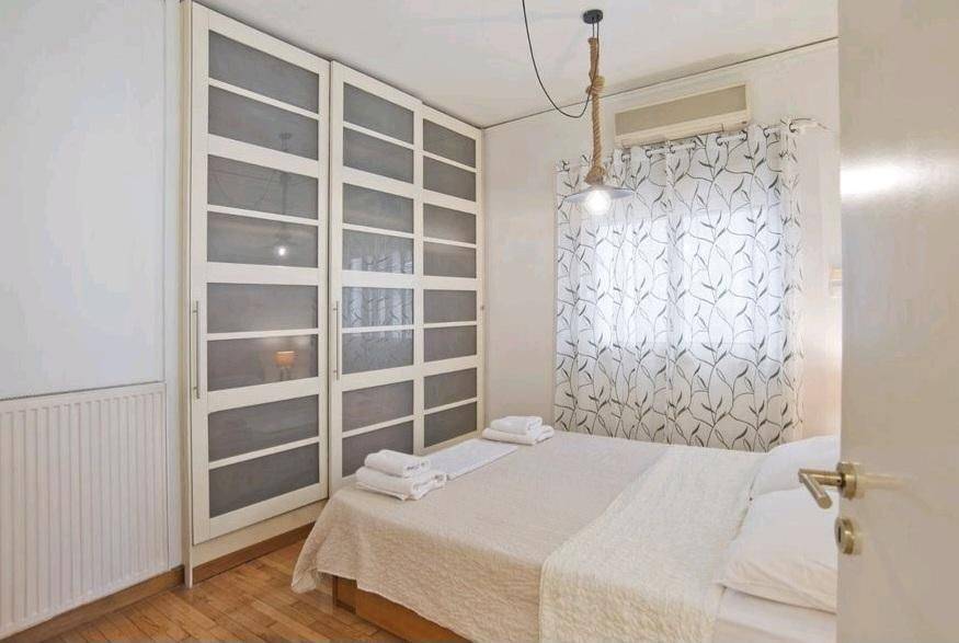 Moschato - Apartment 58sqm fully furnished, bedroom, levels 1, 1st, excellent condition, energy class D, living room, hall, kitchen, bathroom, air condition, parking, quiet, dual aspect apartment, luminous, unobstructed view view, frontage, painted, solar heater, fireplace, balconies, loft storage, aluminum frames, double glazed windows, door screen, ceramic tiles floors, secure door, within city plan, residential zone, access from asphalt.