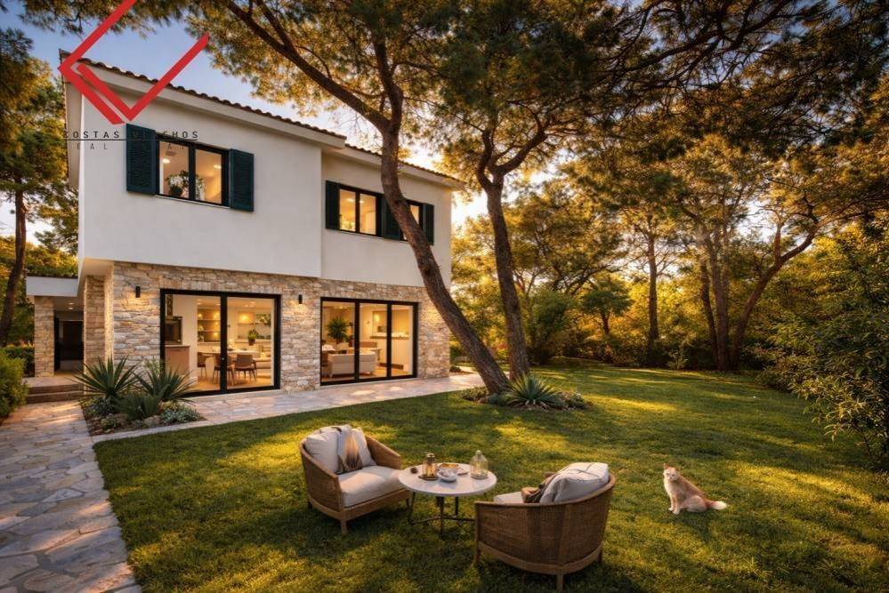 Vari- Varkiza, Varkiza: FOR RENT renovated and airy corner detached house 180 sq.m. on two levels, in one of the most quiet and privileged areas of the southern suburbs. The detached house (renovation 2026) has 3 bedrooms (one master), spacious living room, kitchen with dining room, storage room, bathroom and 2 WC. It comes fully equipped with electrical appliances, autonomous heating and a nice view. Ideal for families or couples – pets allowed. The plot of 1,488 sq.m. it offers a large garden with plenty of green space, ideal for relaxing, playing or family moments next to nature – a rare advantage so close to the sea. Price €5,000 | Property Code: #7679