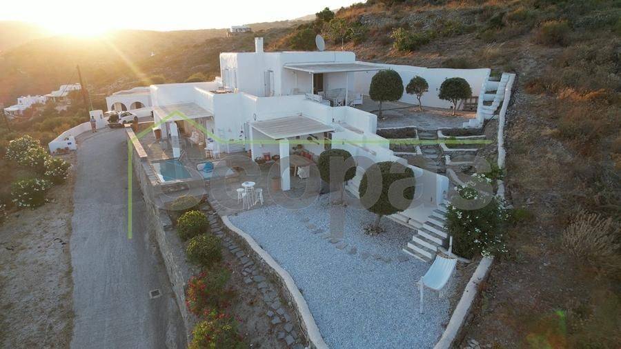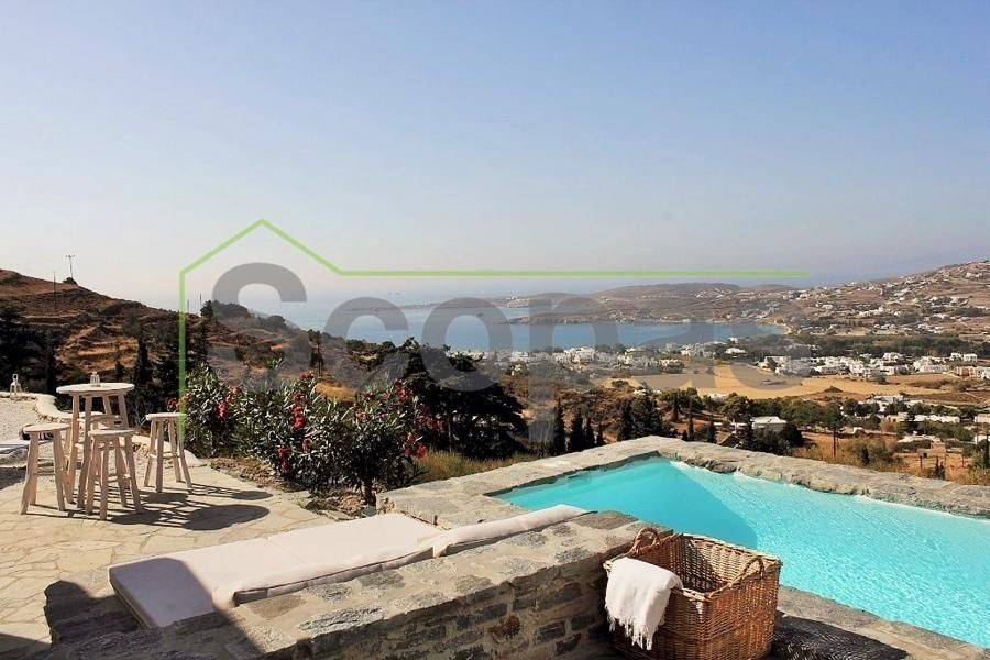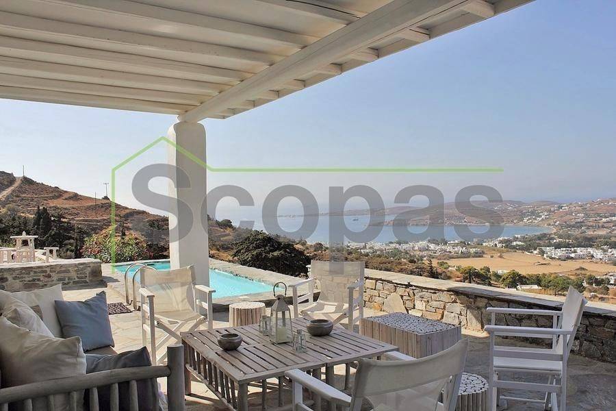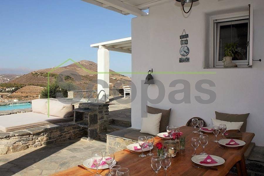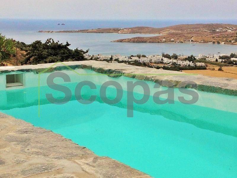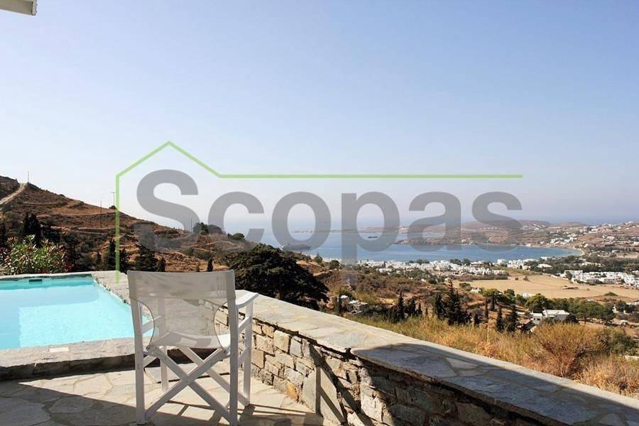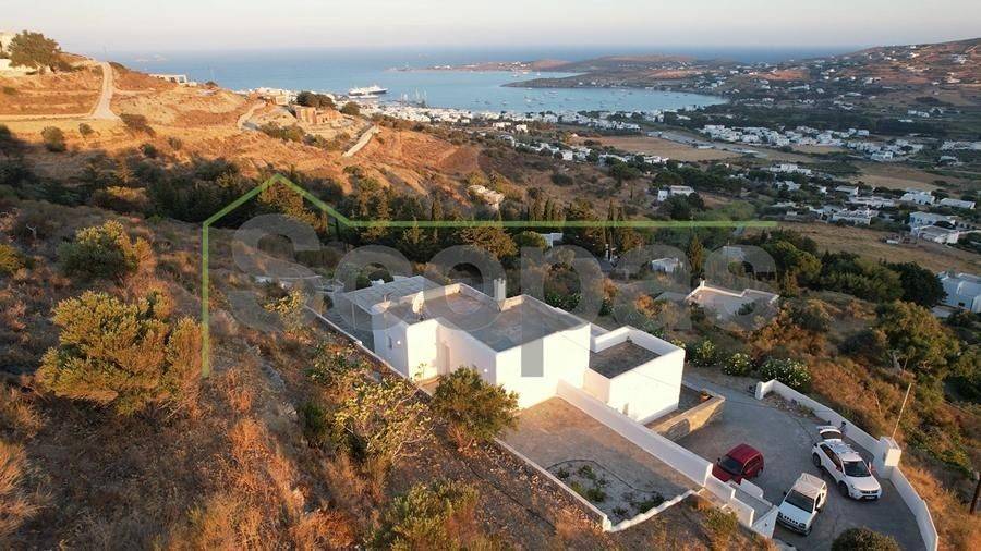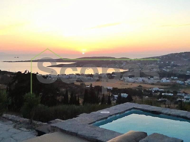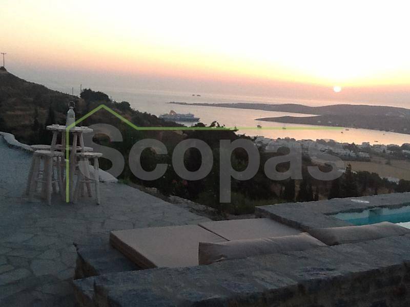 Located in Paros, in Parikia A house of 164m2 on a plot of 2500m2. Renovated in 2014. Ideally located on Paros' west coast between the historic main town of Parikia and the trendy village of Naousa. Built on a hill, this light and airy property offers the perfect formula of privacy and seclusion, along with close proximity to the island's main attractions. The breathtaking view of the sunset, followed by the night skies with Parikia's lights at one's feet, makes this property truly unique. Fully furnished, the interior is simple yet refined, blending the rustic and the contemporary to provide ideal island living. Over two levels, the ground floor includes a master bedroom with an ensuite and its own terrace, a living room with a fireplace, a breakfast/dining area, a separate kitchen, and a guest WC. The upper floor has 2 bedrooms, each with its own ensuite and terrace, and access via an interior staircase as well as a separate entrance from the parking area to ensure privacy for guests. There is also autonomous heating, air conditioning, solar hot water, double-glazed timber windows, tiled floors throughout, and a security door. Outdoors there are large covered and uncovered terraces, a garden, two parking spaces, a store room, and a swimming pool, Western orientation with a sunset view over Parikia bay. 1.8 km from the port of Parikia 10 km from Naousa 11 km from the airport 1000m from the sea. The information and characteristics of the properties have been entered based on the information and data provided by the principal. -The point on the map does not correspond to the real address of the property. -When indicating the property, a identity card or VAT number is necessary, according to Law N.4072/2012 - Official Gazette 86/A/11-4-2012.