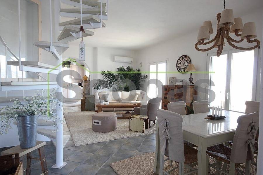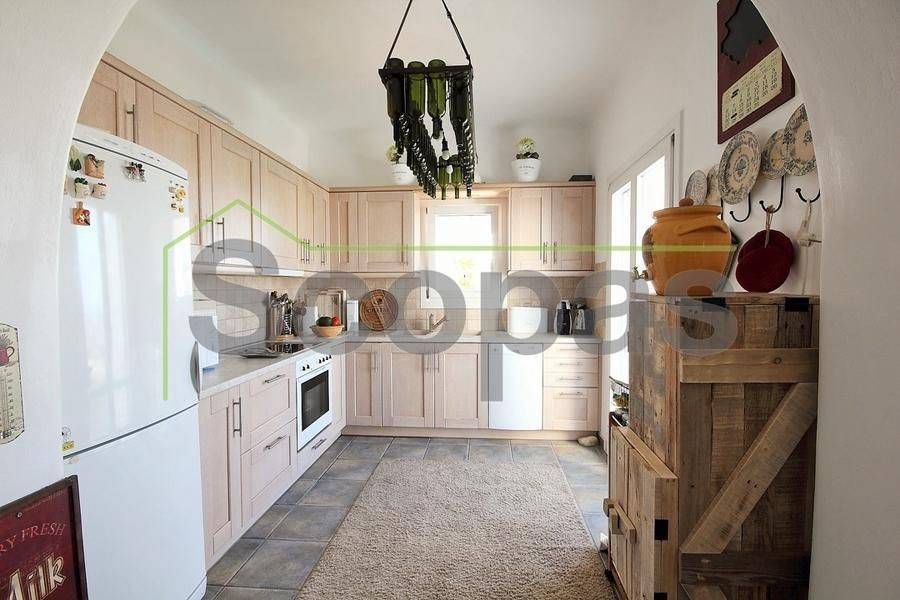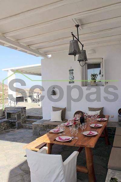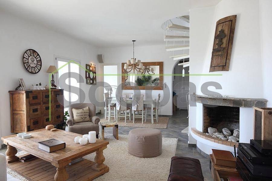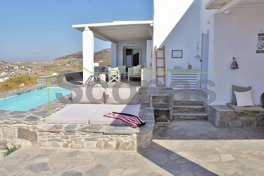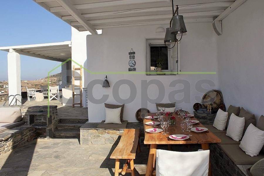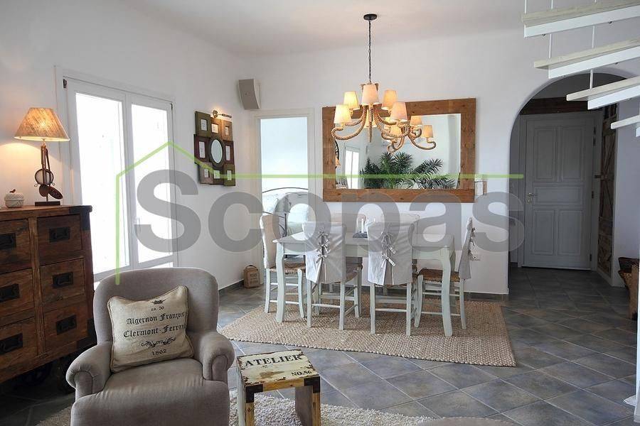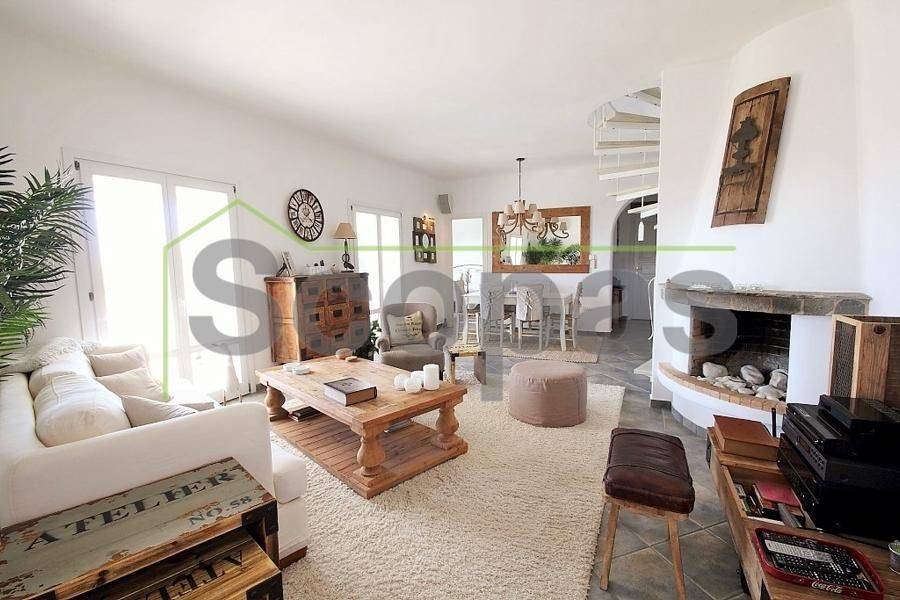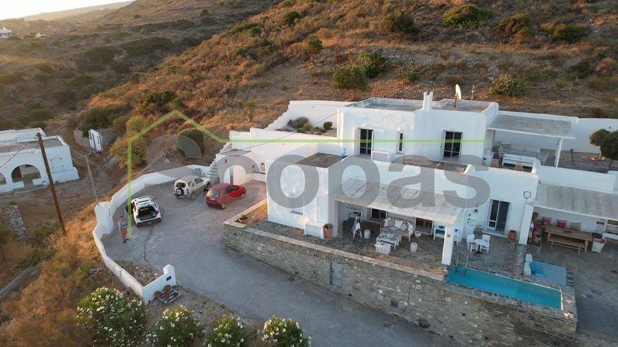 Located in Paros, in Parikia A house of 164m2 on a plot of 2500m2. Renovated in 2014. Ideally located on Paros' west coast between the historic main town of Parikia and the trendy village of Naousa. Built on a hill, this light and airy property offers the perfect formula of privacy and seclusion, along with close proximity to the island's main attractions. The breathtaking view of the sunset, followed by the night skies with Parikia's lights at one's feet, makes this property truly unique. Fully furnished, the interior is simple yet refined, blending the rustic and the contemporary to provide ideal island living. Over two levels, the ground floor includes a master bedroom with an ensuite and its own terrace, a living room with a fireplace, a breakfast/dining area, a separate kitchen, and a guest WC. The upper floor has 2 bedrooms, each with its own ensuite and terrace, and access via an interior staircase as well as a separate entrance from the parking area to ensure privacy for guests. There is also autonomous heating, air conditioning, solar hot water, double-glazed timber windows, tiled floors throughout, and a security door. Outdoors there are large covered and uncovered terraces, a garden, two parking spaces, a store room, and a swimming pool, Western orientation with a sunset view over Parikia bay. 1.8 km from the port of Parikia 10 km from Naousa 11 km from the airport 1000m from the sea. The information and characteristics of the properties have been entered based on the information and data provided by the principal. -The point on the map does not correspond to the real address of the property. -When indicating the property, a identity card or VAT number is necessary, according to Law N.4072/2012 - Official Gazette 86/A/11-4-2012.