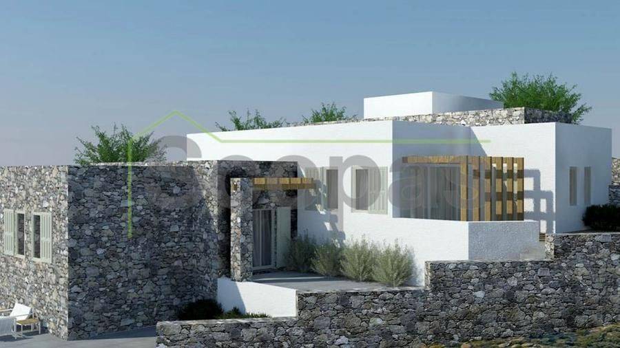 House for sale in southern Antiparos, in the area of Agios Giorgios. Luxurious villa of 340m2 under construction, in a complex of 2 residences. The plans are for a house in levels with 5 bedrooms and bathrooms, a living room, kitchen, verandahs, basement, and a private swimming pool overlooking the sea. It is being sold as a completed construction. With a view of the sea and the island of Despotiko and very close to the beach, it is an ideal choice for a holiday home but also as an investment. Southwestern orientation with a 120-degree view of the sea and the island of Despotiko. All networks are connected. Access by dirt road. 10 km from the port of Antiparos 750 m from Agios Georgios Beach 500 meters from the sea