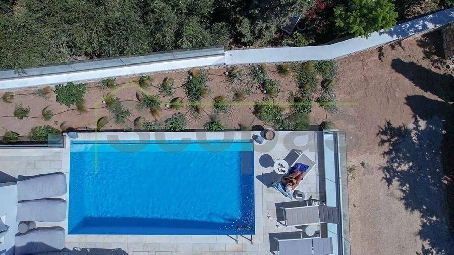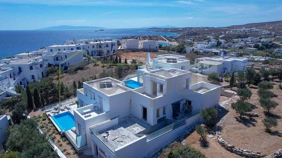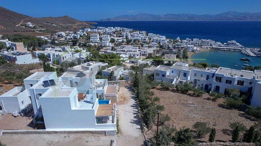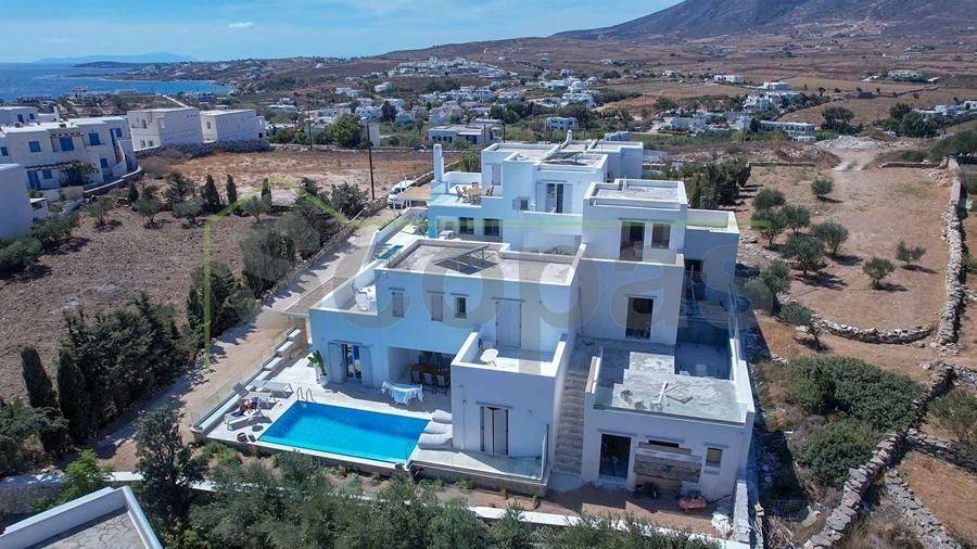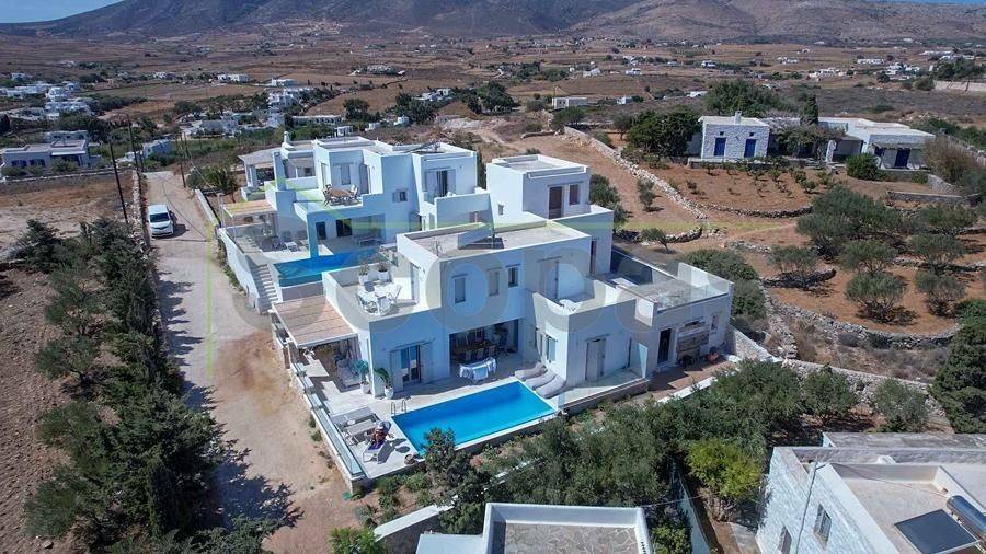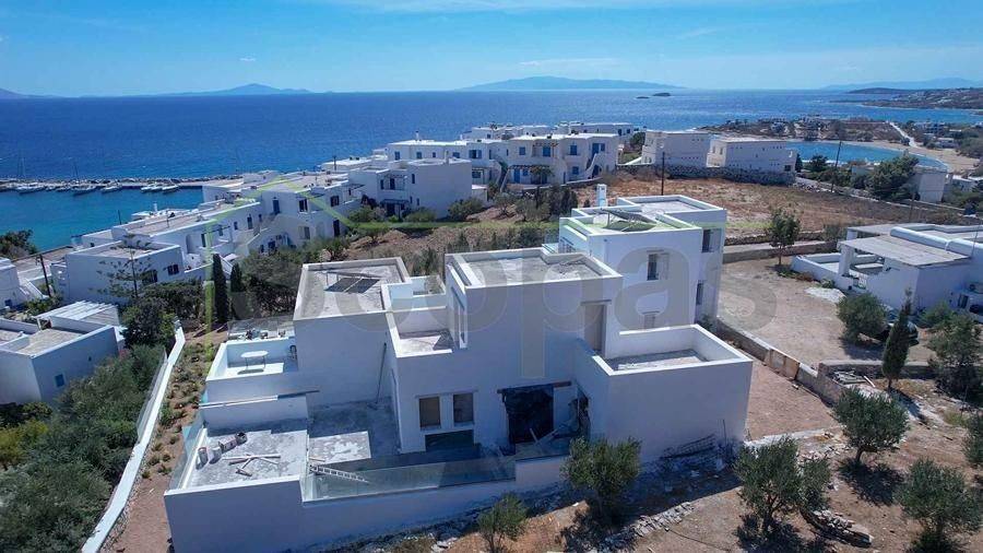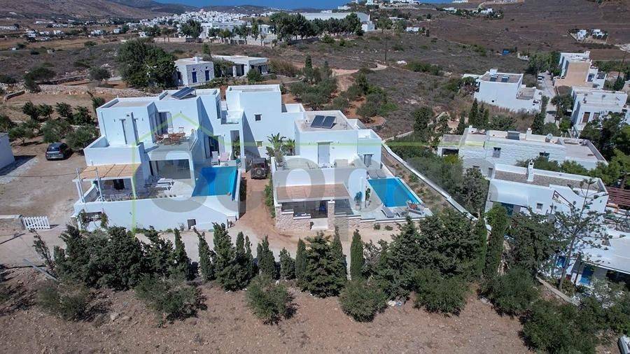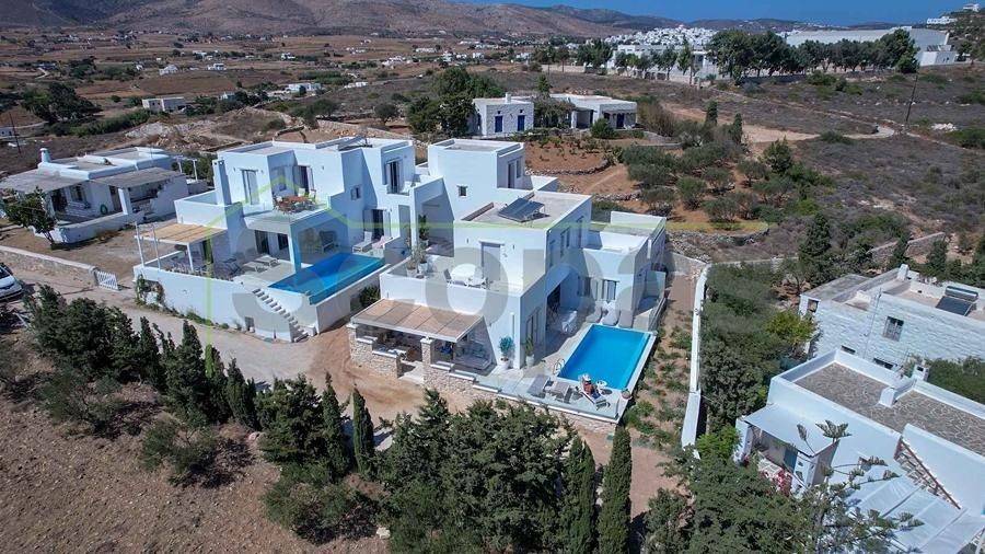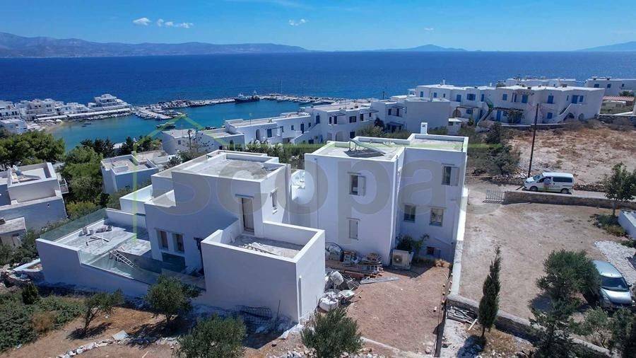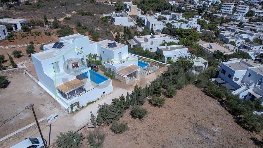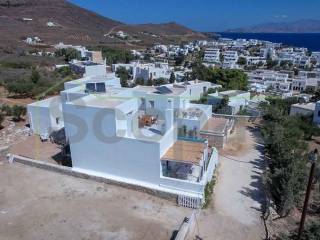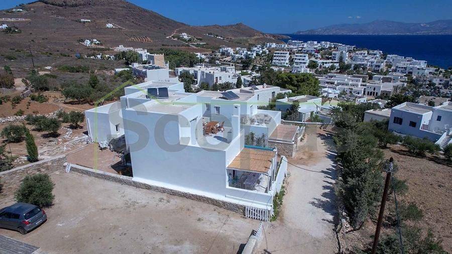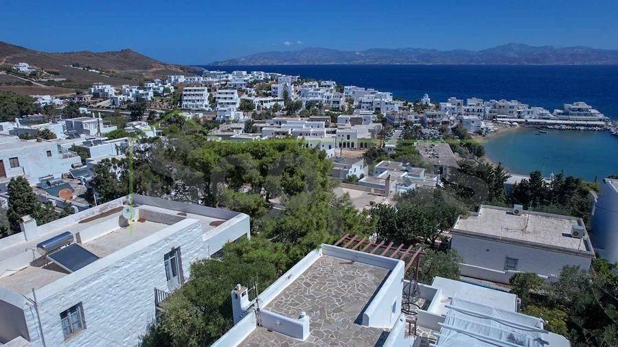 House for sale in eastern Paros, in Logaras. A residence of 160m2 in a complex of 3 houses on a plot of 750m2. It includes 4 bedrooms, 3 bathrooms, 1 WC, a large kitchen with built-in appliances and a living room, with air conditioning, double-glazed windows, flyscreens, and an internal staircase. It features a swimming pool, car parking space, store room, solar panels, private roof terrace, verandahs and three-phase power. In a quiet area with a private pool, a view to the village of Piso Livadi and to the sea and the nearby island of Naxos, it is an ideal choice as a residence or rental investment. Southeastern orientation with 90-degree sea views towards Naxos. All networks available for connection. Access by dirt road. 17 km from the port of Parikia 20 km from the airport 200 meters from the beach