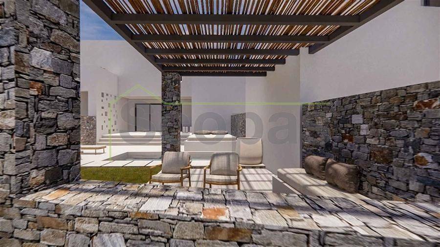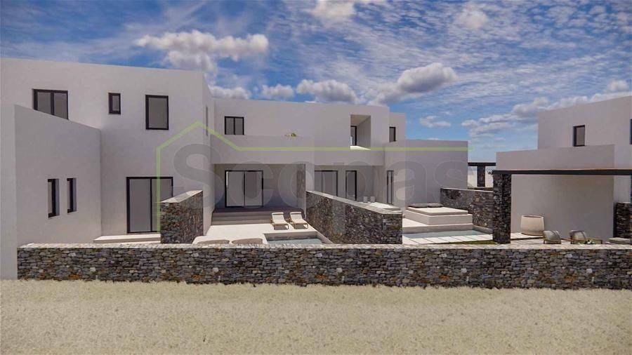 House of 151.5m2 for sale by SCOPAS REAL ESTATE & CONSTRUCTION. 2-level house of 151.5m2 (fully furnished), on a plot of 1006m2, on the south side of Paros, in the area of Agkairia. The property consists of 4 bedrooms, all with ensuite bathrooms, a living room area, a kitchen and a WC. It also has a beautiful outdoor area with a swimming pool, a yard, and parking. South orientation with a unique view of the Aegean Sea and Antiparos Island. Suitable for permanent or holiday home in the idyllic Cycladic landscape. It is also an ideal choice for investment. Accessible by paved road. 1.9 km from the sea, 5 km from the airport, 13.3 km from the port.