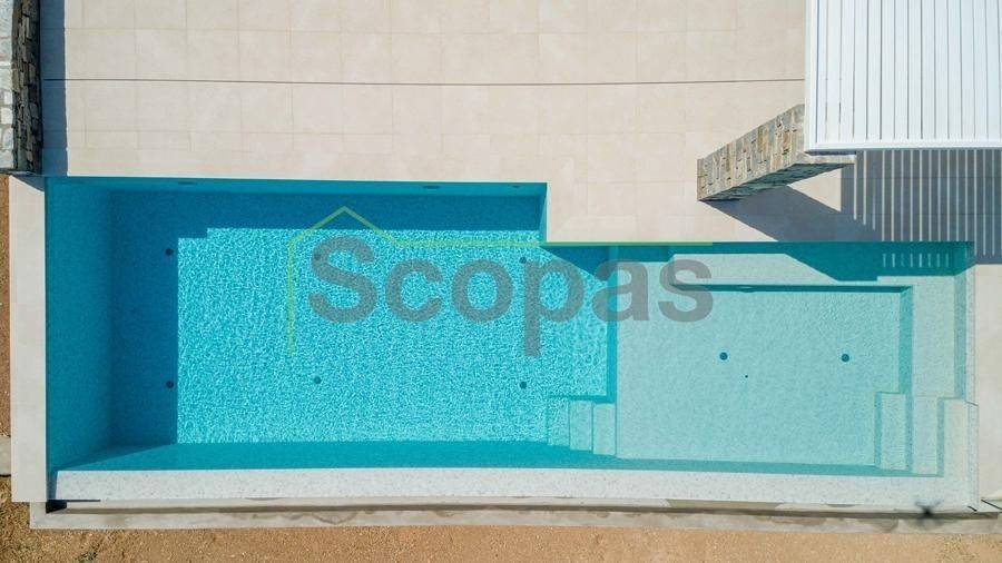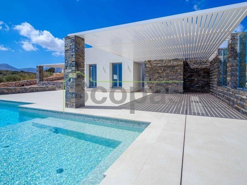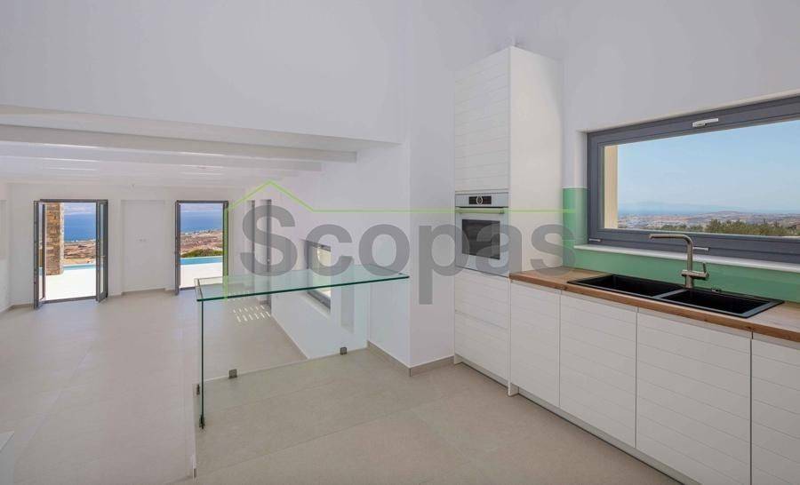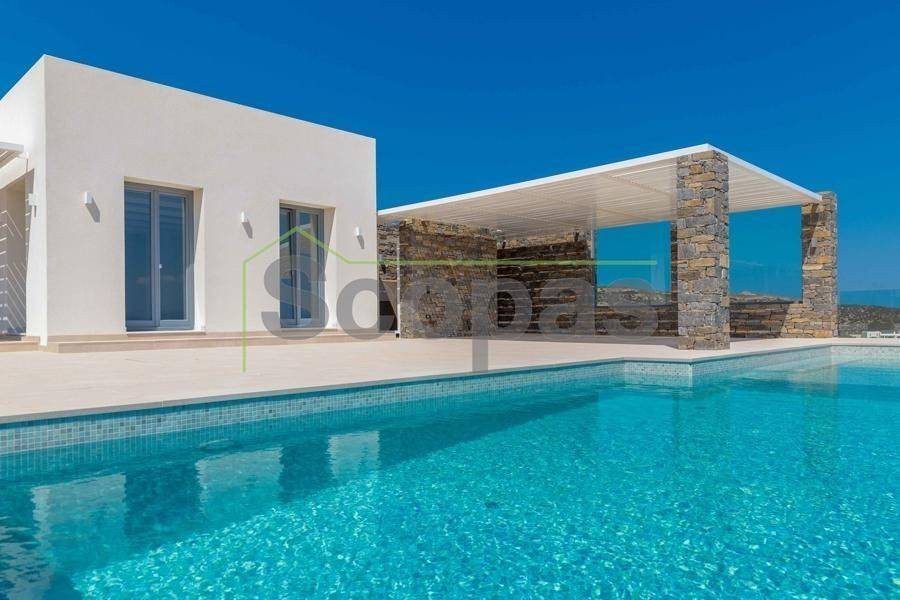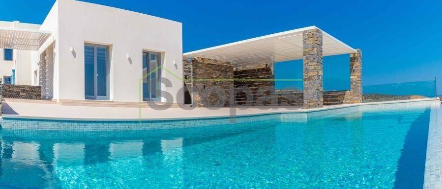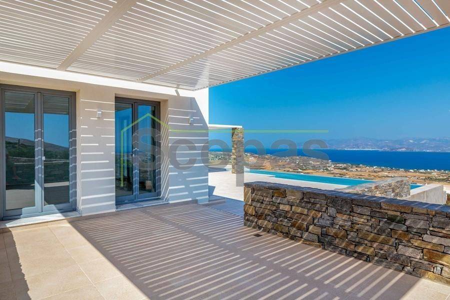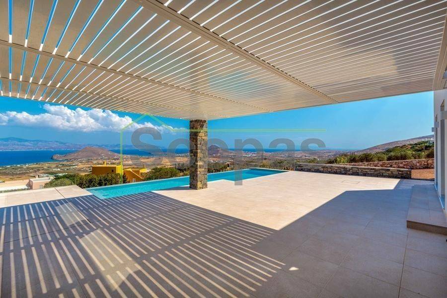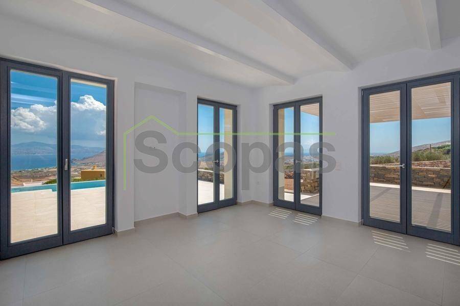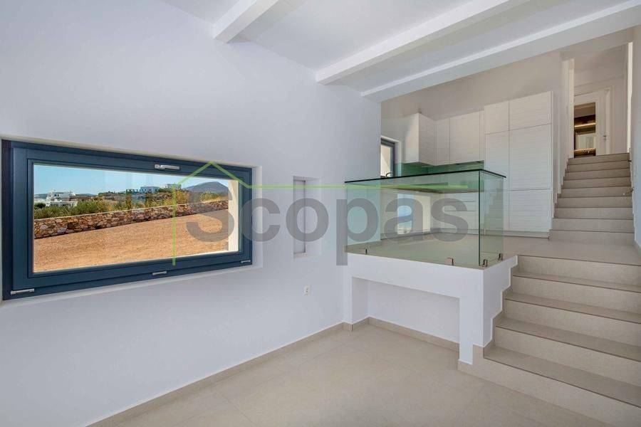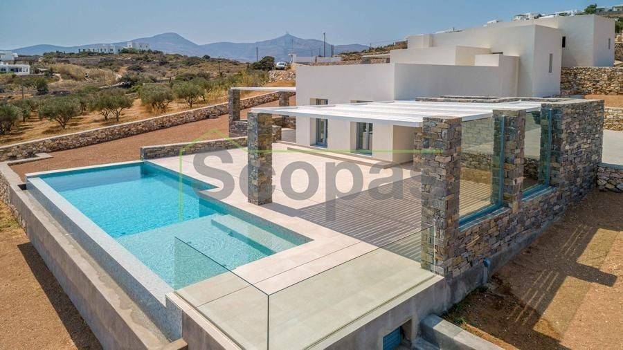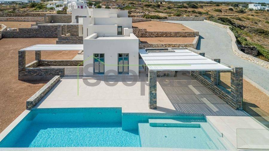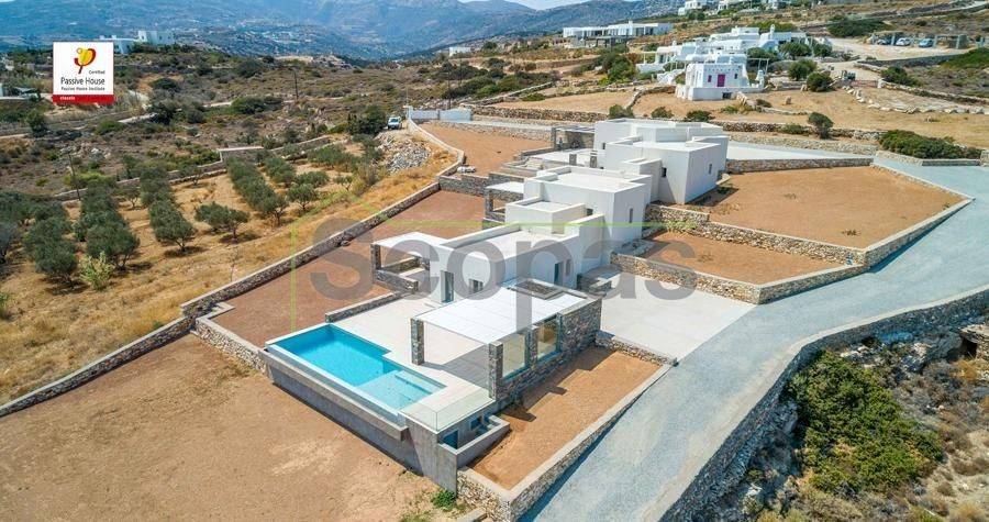 Luxury Newly Built Villa for Sale by SCOPAS REAL ESTATE and CONSTRUCTION Luxury newly built villa with low energy consumption (A+) in Paros. This exceptional south-facing villa, perched on the top of a hill with panoramic views of Mykonos, Naxos, and Ios, is a certified passive house (A++) by an independent organization. It sets new standards in the construction of contemporary residences in Paros, combining modern design with environmental responsibility and outstanding energy efficiency. This beautiful villa offers all modern amenities for comfortable living. The luxury residence features 4 spacious bedrooms, 4 modern bathrooms, and a welcoming open-plan living room and kitchen. The kitchen is fully equipped, while the interior design showcases carefully selected details. Wooden window frames and triple-glazed windows provide excellent thermal insulation. For the warm summer days, the property is equipped with air conditioning, while in winter you can enjoy the comfort of autonomous heating. External thermal insulation ensures energy efficiency class A+, and there is also a solar water heater. Additionally, the villa offers four balconies with sea views and an outdoor area featuring a large swimming pool, BBQ area, outdoor bathroom, and a landscaped garden—ideal for relaxation and entertainment. The property is located in a quiet area, outside the settlement, with access via a dirt road for the last few meters, and includes 4 open parking spaces. The property is ideal for investment, offering luxury and comfort in one of the most beautiful locations. Its privileged position provides stunning views of the sea and the surrounding natural landscape. The villa also includes storage space and is situated on a perfectly organized and landscaped plot of 2,261 sq.m. Built in 2025, this villa represents a unique opportunity for those seeking a luxury residence in a naturally beautiful environment. The property consists of two levels: Ground floor with a total area of 138.36 sq.m., including a kitchen, spacious living room, 2 bedrooms, and 3 bathrooms. Basement / semi-basement with a total area of 78.94 sq.m., including 2 bedrooms, 2 bathrooms, and a storage room of 16.38 sq.m. Externally, there is a swimming pool with waterfall, BBQ area, and 4 parking spaces. In the pool area, there is also an additional small outdoor bathroom. Furthermore, the property includes a private borehole (water well). Access is via a dirt road for the final meters. 2.9 km from the sea 9.7 km from the port of Parikia 19.5 km from the airport The information and property details have been recorded based on the information provided by the owner. The map location does not correspond to the exact address of the property. For property viewings, a police ID or Tax Identification Number (AFM) is required, in accordance with Law N.4072/2012, Government Gazette 86/A/11-4-2012.