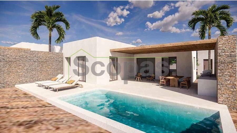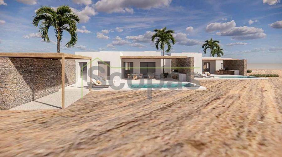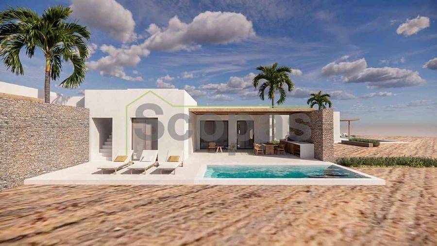 House under construction for sale by SCOPAS REAL ESTATE & CONSTRUCTION. Ground floor house of 140.97m², in a complex of three houses, located in western Paros, in Kampos. This property will feature two bedrooms (one with an ensuite bathroom), one bathroom, and a combined living room-kitchen-dining area, as well as an independent guest house with its own bathroom. Outside, there will be a private pool, two parking spaces, a barbecue area, a garden, and a storage room. Ideal for either a permanent residence or a holiday home in the picturesque Cycladic landscape, it also represents an excellent investment opportunity. With a southeast orientation, the property offers a unique view of the Aegean Sea and the channel between Antiparos and Paros. It is accessible via a paved road and is situated: - 500m from the nearest beach, - 5.5km from the airport, - 7.6km from the port. The information and characteristics of the properties have been recorded based on the data provided by the principal. - The point marked on the map does not correspond to the actual address of the property. - When indicating the property, an identity card or VAT number is necessary, as per Law N.4072/2012 - Official Gazette 86/A/11-4-2012.