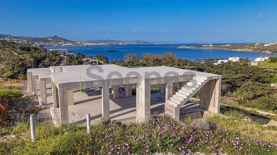 Unfinished villa of 355 m² for sale by SCOPAS REAL ESTATE & CONSTRUCTION. This unfinished 2-storey villa has a total area of 355 m², situated on a plot of 8,002 m² in western Paros, Krotiri. It features 4 bedrooms, 4 bathrooms, a kitchen, and a living room. The external area can be configured to suit your preferences. This property is suitable for a permanent residence or a holiday home in the idyllic Cycladic landscape. It is also an ideal choice for investment. With a southwestern orientation, the villa boasts stunning views of Paroikia's Bay. All necessary utilities are available, and access is from a paved road. The villa is located 250 m from Krios beach, 3.2 km from the port of Parikia, and 12.9 km from the airport. The information and characteristics of the property have been compiled based on the data provided by the principal. The point on the map does not correspond to the actual address of the property. When inquiring about the property, a valid identity card or VAT number is required, according to Law N. 4072/2012 - Official Gazette 86/A/11-4-2012.