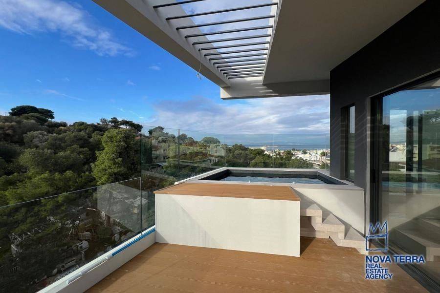 Luxury Penthouse for Sale in Voula - Pigadakia with Various Characteristics and Modern Amenities This newly built penthouse in Voula - Pigadakia offers a luxurious living experience with a total area of 167 sq.m. It features 3 master bedrooms, a spacious living room with a fire place, a modern kitchen, and 3 bathrooms including a jacuzzi. The property also includes a swimming pool, a store room, and a garage for 2 cars. The penthouse is equipped with high-quality amenities such as wooden flooring, air conditioning, floor heating, double-glazed windows, and a security alarm system. It is located in a residential area with easy access to the main road and offers a bright and airy living space with a beautiful view from side to side. This property is in perfect condition and is ideal for both residential living and investment purposes. Don't miss the opportunity to own this luxurious penthouse in Voula - Pigadakia. Contact us for more information and to schedule a viewing. Property ID: 47913, Energy class: Α+. Visit www.nova-terra.gr for more details. Pets allowed.