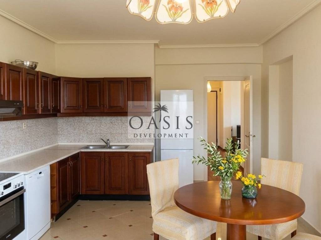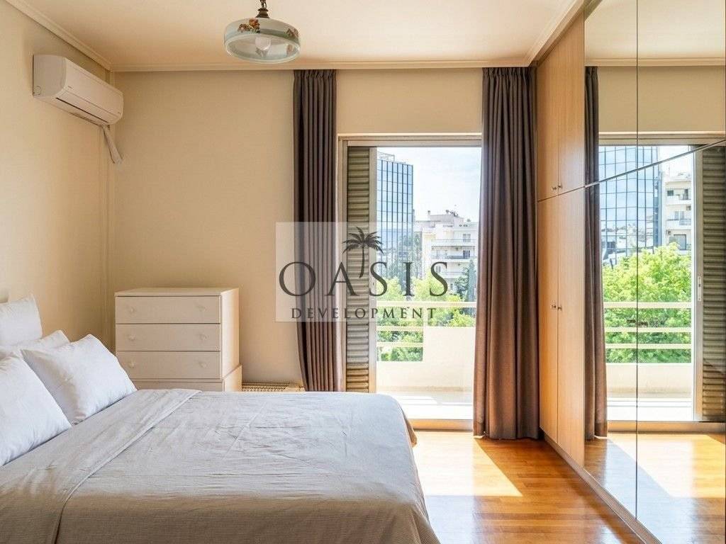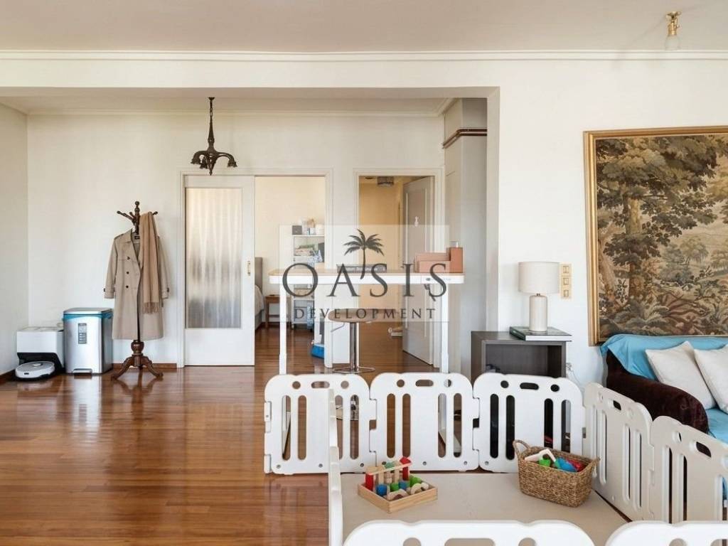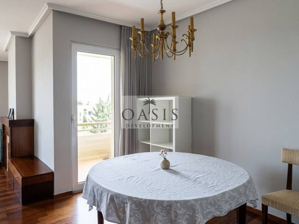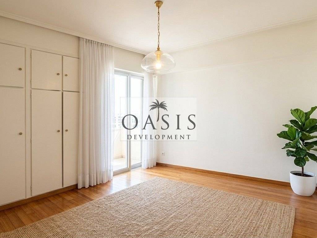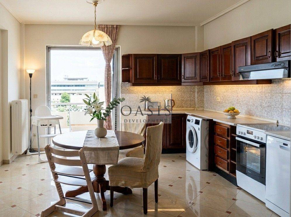 Renovated Penthouse, Paradiso Marousi — 157 sqm A rare top-floor opportunity in one of Marousi's most sought-after neighborhoods. This fully renovated 157 sqm penthouse sits on the 5th (top) floor of a well-kept 5-story building and is diamperes, catching light from every side throughout the day. Layout: 3 bedrooms, 1 full bathroom, separate WC, spacious living room with fireplace, and an eat-in kitchen. The master bedroom has built-in wardrobes and private balcony access. Finishes: hardwood floors throughout, recessed and track lighting, sliding glass doors to the balcony, wooden cabinetry with stone countertops, built-in oven and dishwasher, designer bathroom fixtures. Building: elevator, and a covered parking space in the pilotis included — a real asset in this area. Location: quiet tree-lined streets in Paradiso, walking distance to top schools and shopping, with quick access to Marousi metro station and the Attiki Odos motorway. Ideal for families and professionals working in the northern-suburbs business district. Schedule a viewing today.