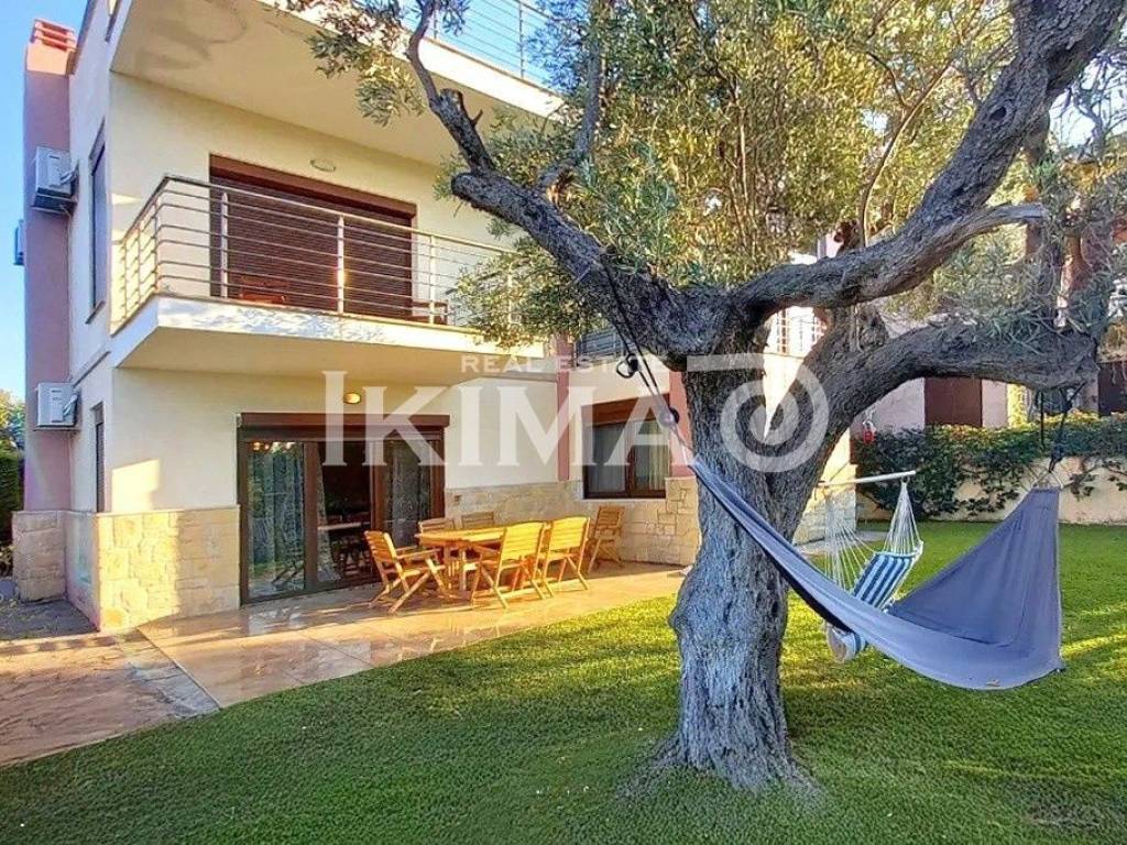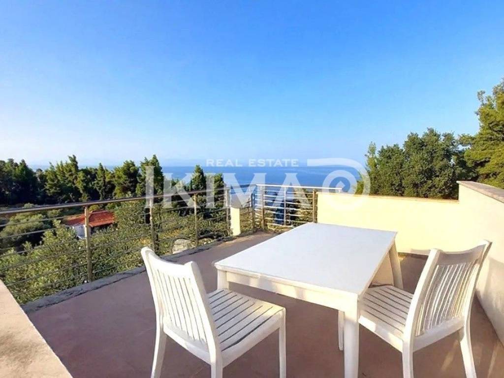In a breathtaking location in Kryopigi, Chalkidiki, where the green of the pine trees meets the endless blue of the sea, an exceptional 134-square-meter single-family home is available for sale, just 200 meters from the sea, designed to offer a lifestyle experience full of comfort, elegance, and tranquility. Spanning two levels, the home exudes warmth and functionality. On the ground floor, a bright and spacious open-plan living-dining-kitchen area creates the ideal setting for daily life and entertaining, while the guest bathroom adds practicality. Upstairs, three comfortable bedrooms and a stylish bathroom offer privacy and relaxation. Built in 2006 and fully furnished, the home is ready to welcome its new owners. It features modern double-glazed composite windows, air conditioning for ideal conditions year-round, as well as an elegant fireplace that creates a unique atmosphere on winter days. The security door and alarm system ensure a sense of safety, while the parking space and storage area meet every practical need. The true gem of the residence is the impressive 25-square-meter roof garden, a private paradise with unobstructed sea views—ideal for relaxation, sunsets, and unforgettable moments with loved ones. The home harmoniously combines the tranquility of nature with direct access to the water, making it a unique choice for either a permanent residence or a high-end vacation getaway. Price: €370.000 (Property Code: 19 - 2339966).