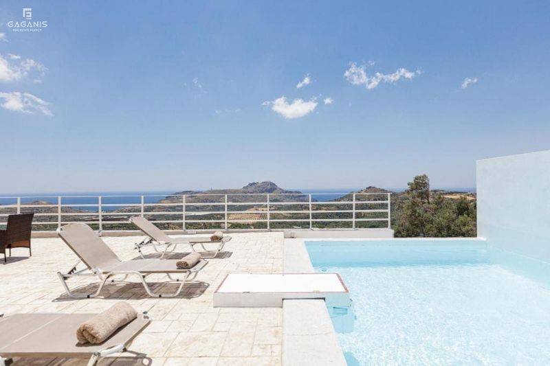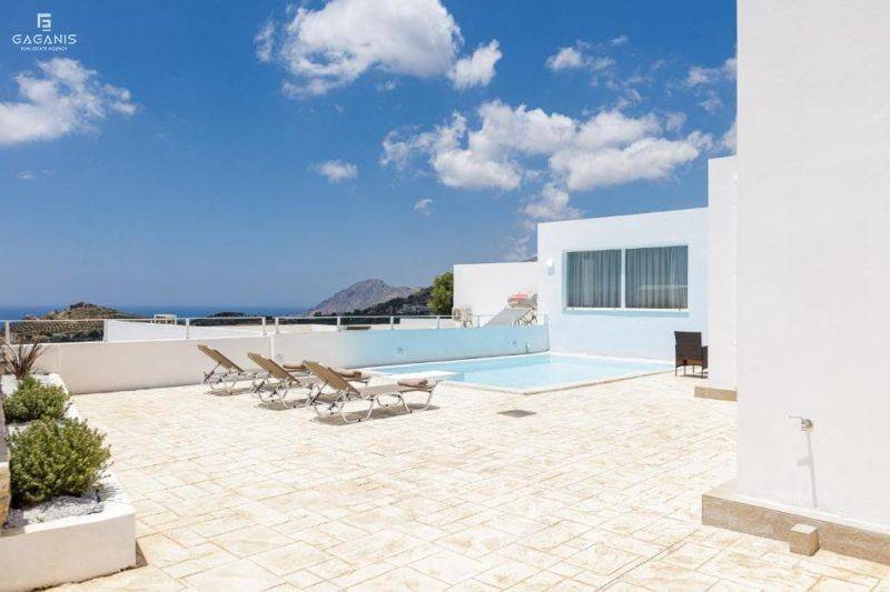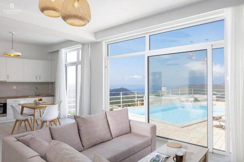 Villa for sale in Mariou, surface area 100 sq.m., built in 2014, in a complex of a total plot of 900 sq.m., in an excellent location with panoramic views of the sea of ​​Damnoni and Plakias. The house consists of 2 bedrooms, 2 bathrooms and an open plan living room-kitchen area, with tiled floors and modern aluminum frames.It has air conditioning throughout and a heated private pool, offering a high level of comfort and quality of living. It is located in a very good location, ideal for both home ownership and tourist exploitation.It is noted that the complex consists of a total of 4 villas, with the option of purchasing the whole for €1,300,000, constituting an excellent investment opportunity in one of the most beautiful areas of southern Crete.
