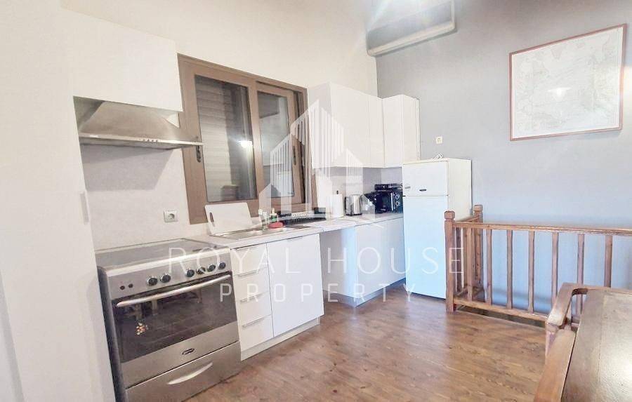 Piraeus, Kastella - Maisonette 80sqm fully furnished, bedroom, levels 1, ground floor, renovated, year built 1940, renovation year 2026, energy class D, living room, kitchen, bathroom, heating type: autonomous (natural gas), air condition, quiet, dual aspect apartment, luminous, frontage, painted, storage space, balconies, aluminum frames, double glazed windows, door screen, secure door, internal staircase, pets allowed, residential zone, special offer.