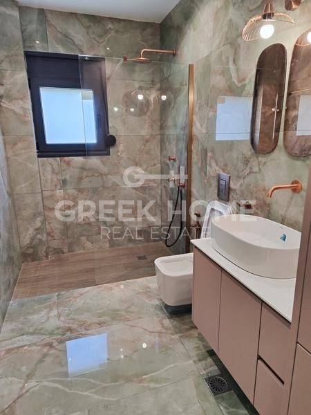 Spata, Hristoupoli - Apartment 114sqm bedrooms 3, upper floor - 1st, excellent condition, year built 2026, energy class D, living room, hall, kitchen, 2 bathrooms, heating type: autonomous (heat pump), parking covered, quiet, dual aspect apartment, luminous, unobstructed view view, painted, storage space, solar heater, fireplace, balconies, large balconies, tents, garden, aluminum frames, double glazed windows, door screen, wood floors, close to bus stop (up to 100m), close to market (up to 100m), close to super market (up to 100m), close to attiki odos (up to 100m).