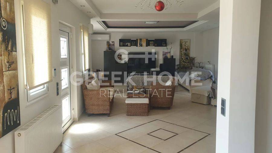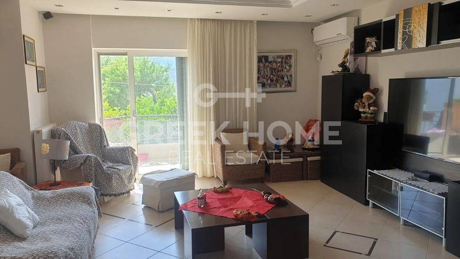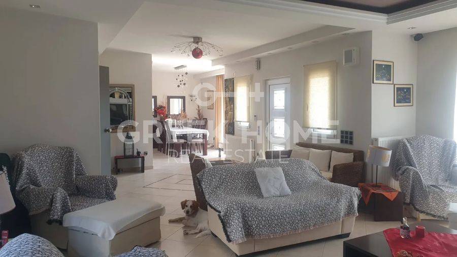 Spata, Centre - Detached House 417sqm plot 250sqm, fully furnished, bedrooms 5, master bedroom, levels 3, ground floor (1 bedrooms, living room, kitchen, bathroom, playroom) - 1st (living room, dinning room, kitchen, wc) - attic, excellent condition, year built 2008, energy class D, living room, hall, kitchen, semi-outdoor space, 2 bathrooms, 2 wc, heating type: autonomous (oil), air condition, a/c type vrv, parking ground floor,2, quiet, dual aspect apartment, luminous, unobstructed view view, painted, storage space, boiler, fireplace, large balconies, tents, elevator, loft storage, garden, built in appliances, aluminum frames, double glazed windows, door screen, wood & tile floors, office, three phase electricity, secure door, alarm, surveillance cameras, video doorbell, luxurious, internal staircase, cloakroom, service room, pets allowed, western orientation, close to market (up to 100m), close to metro/train (up to 5000m), close to sea (up to 5000m), close to attiki odos (up to 1000m), close to bus stop (up to 100m).