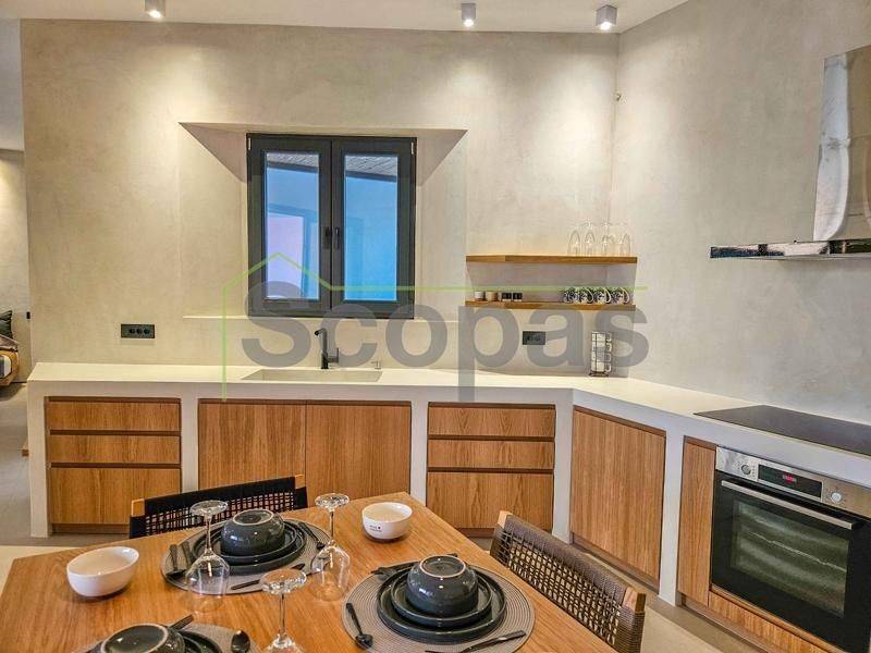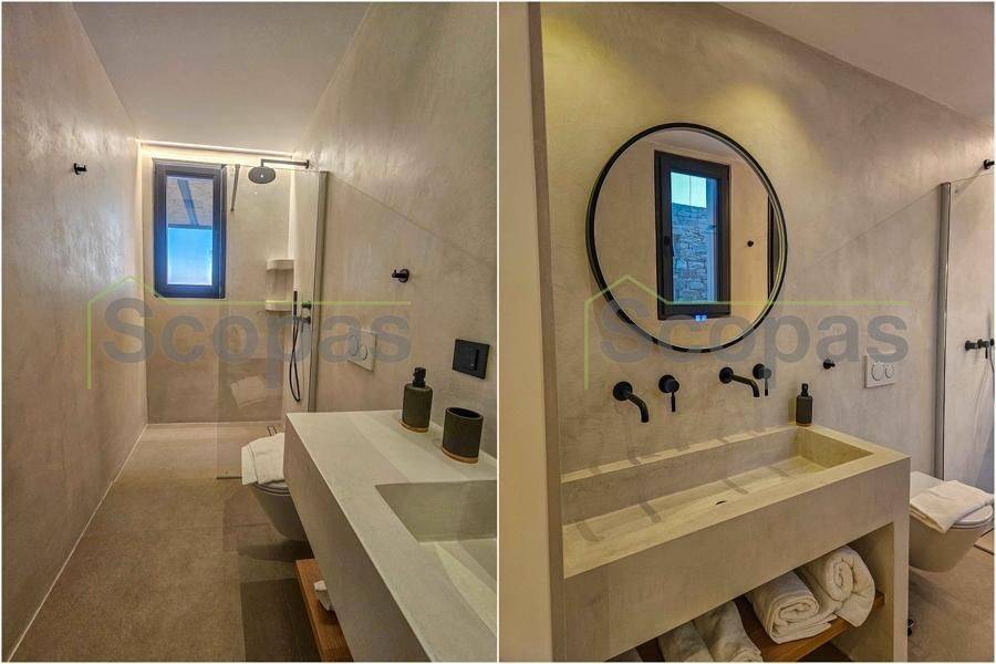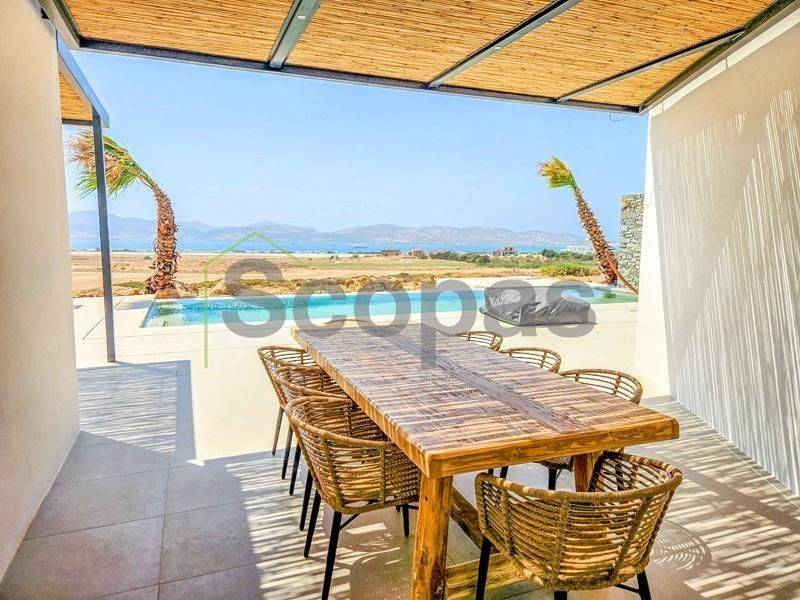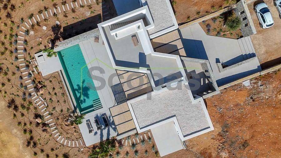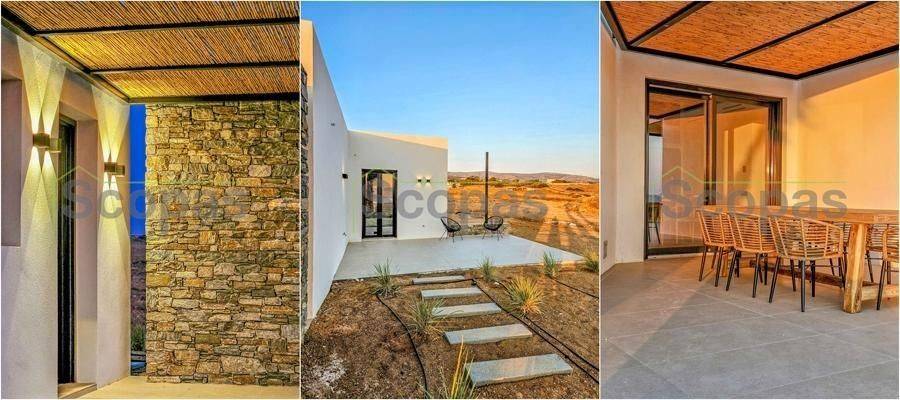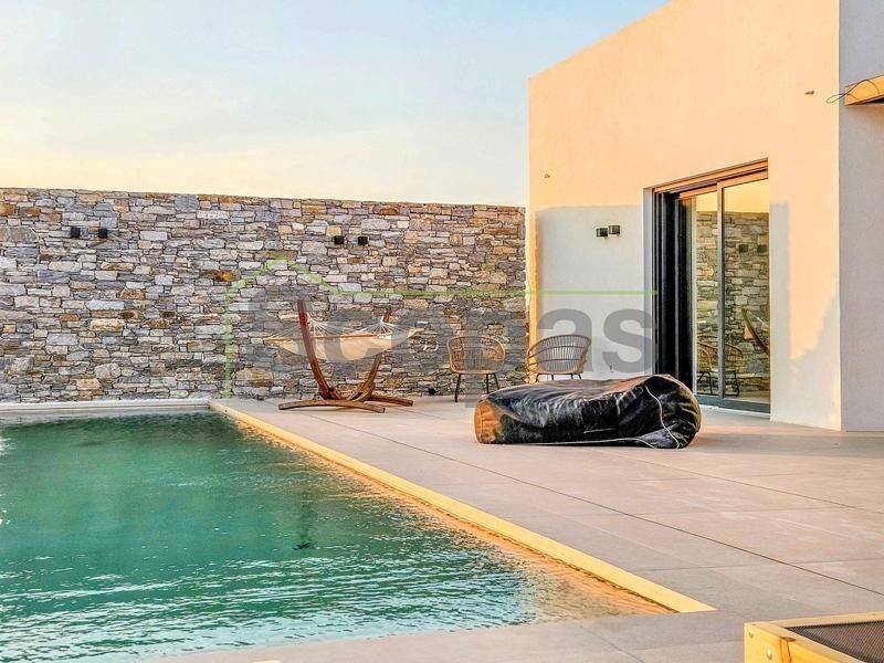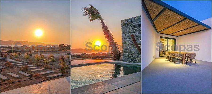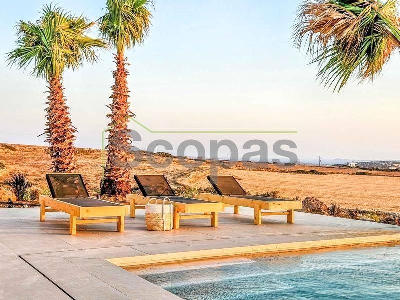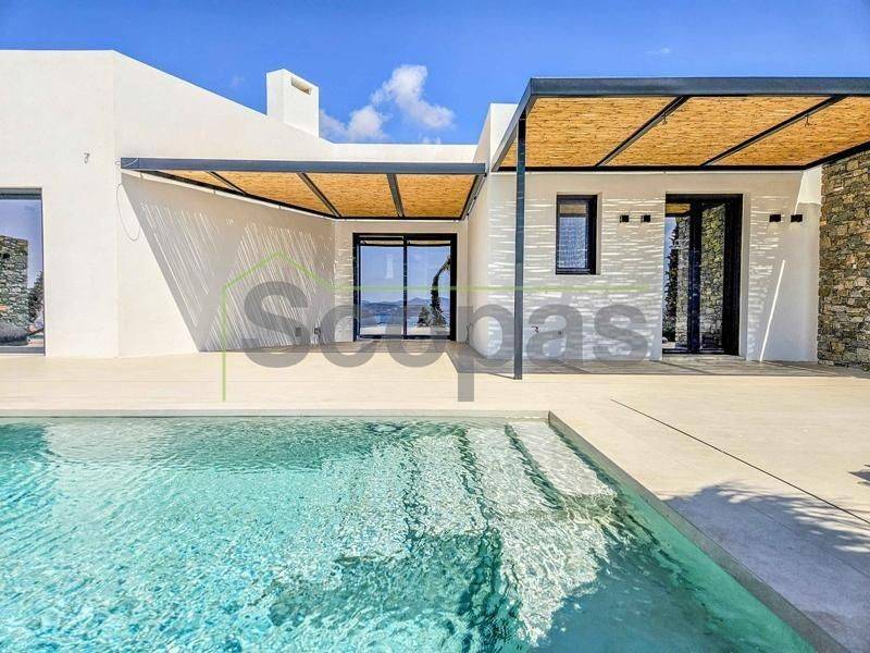 House for sale by SCOPAS REAL ESTATE and CONSTRUCTION. In one of the most serene and picturesque areas of Paros, in beautiful Kampos, this independent 173 sq.m. villa stands out as a rare opportunity. Set on a 7,000 sq.m. plot with an ideal west-facing orientation, it enjoys uninterrupted panoramic views of the Aegean Sea and stunning sunsets all year round. The villa is currently under construction and will be delivered fully completed within 18 months. Interior Layout – Modern Lines & Comfort Bright open-plan living room, dining area and kitchen with modern design. Guest WC for added convenience. Two spacious bedrooms, each with its own private bathroom. Independent guest house with its own bathroom – perfect for guests or for generating rental income. Outdoor Spaces – A Private Oasis Spacious surrounding verandas that embrace the villa and highlight the panoramic views. Private swimming pool for relaxation and leisure. Outdoor BBQ area and convenient storage room. Stunning roof garden with a second BBQ and dining area, creating the ultimate setting for gatherings, alfresco dining and memorable evenings under the stars. Additional Features Covered parking spaces. Option to fully customize the property with furnishings, lighting, electrical appliances and landscaped gardens (at additional cost). This villa combines Cycladic charm with contemporary luxury, making it ideal both for tourist exploitation—with excellent rental potential—and for holiday or permanent residence. Distances 1.7 km from the airport 3.5 km from the beach 10.3 km from the port The Surrounding Area Kampos is one of the island’s most peaceful and authentic locations, offering natural beauty, privacy and a relaxed Cycladic atmosphere. While tranquil, it remains close to beautiful beaches, the airport and Paros’ lively coastal areas, providing the perfect balance between seclusion and convenience. The details and characteristics of the property have been provided based on the information supplied by the owner. - The location marker on the map does not correspond to the exact address of the property. - In compliance with Law N.4072/2012 - Official Gazette 86/A/11-4-2012, a valid identity card or VAT number is required when referencing the property.