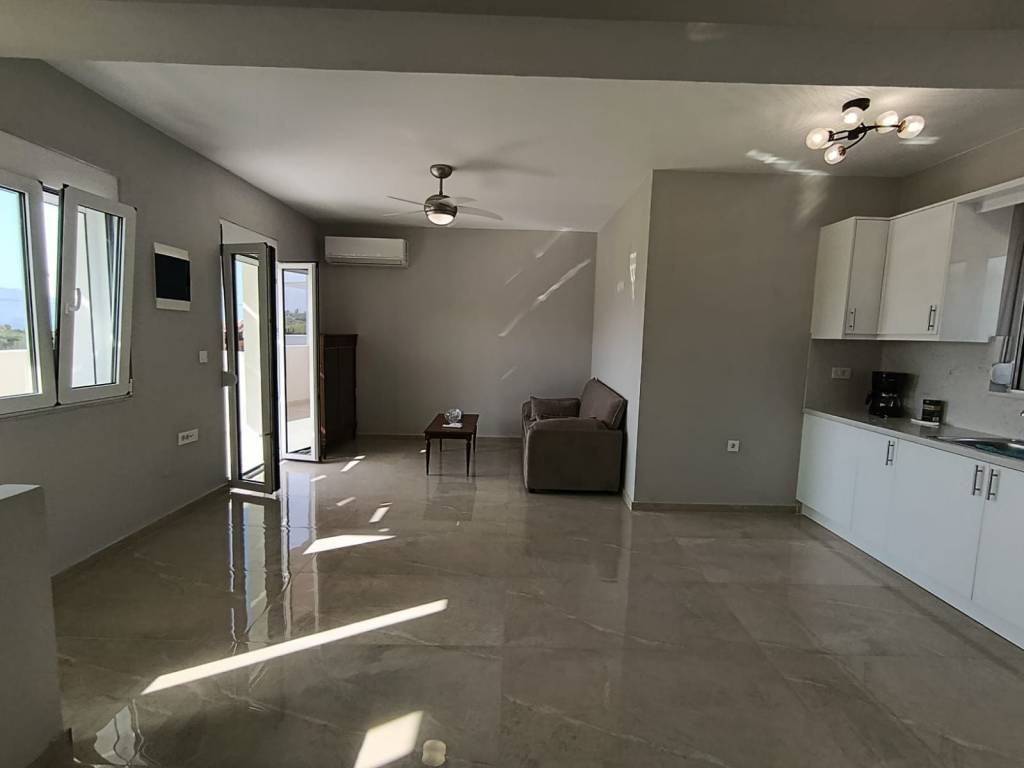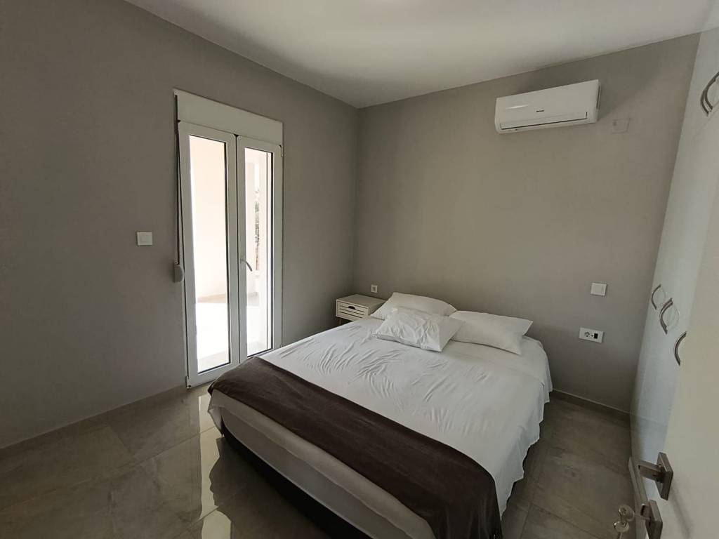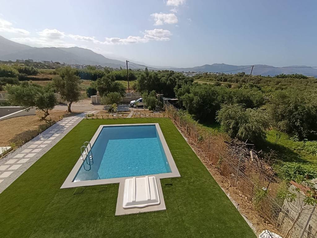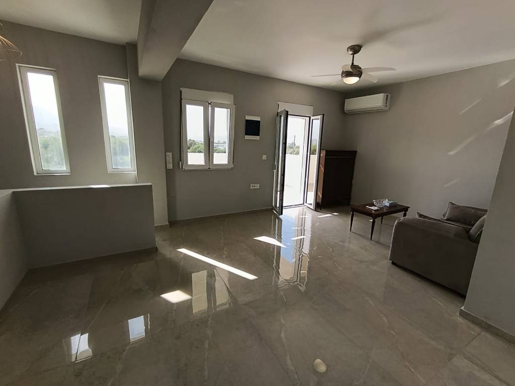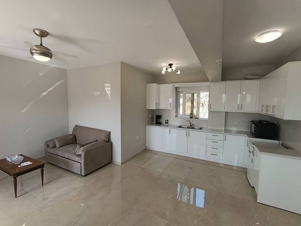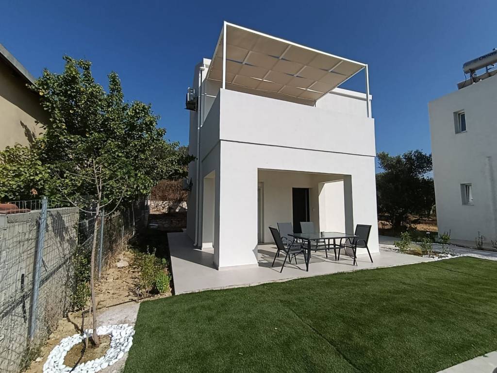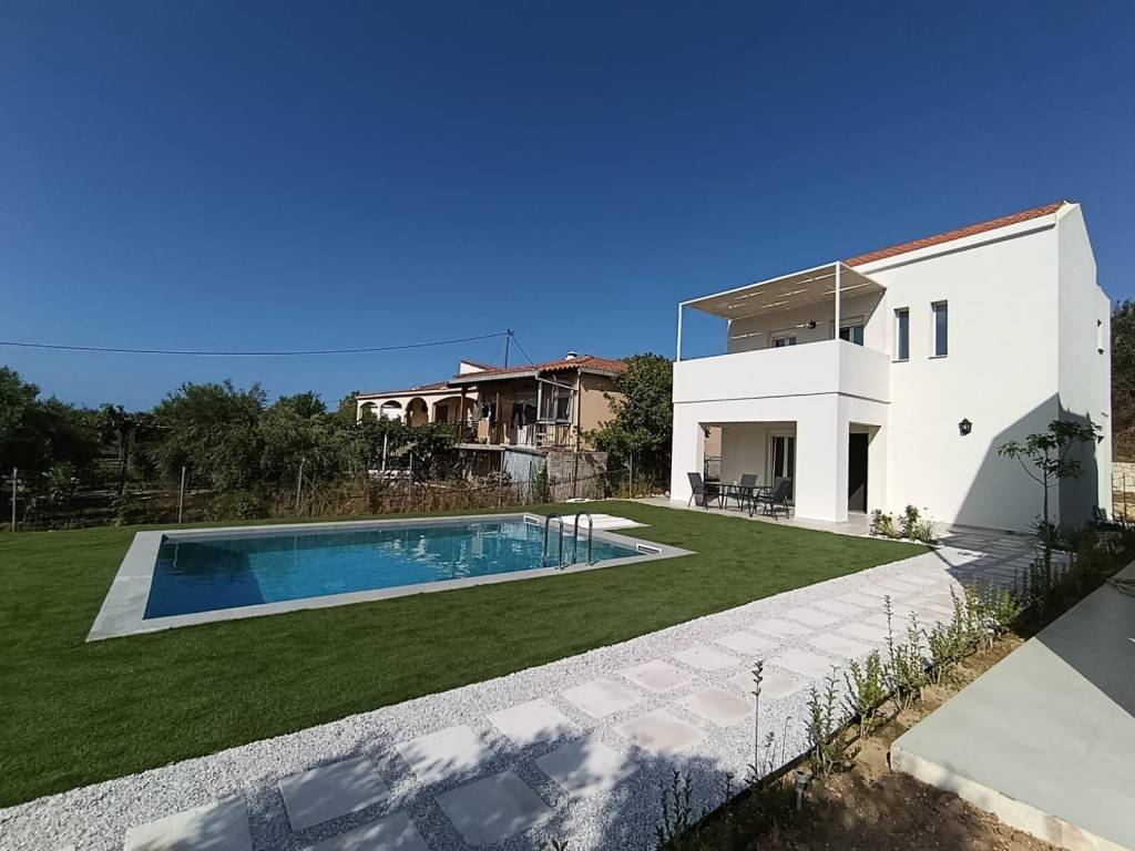 For sale: a newly built detached house of 80 sq.m. on a 500 sq.m. plot, with sea and mountain views, located in the village of Dramia. The residence is developed over two levels and has been designed with emphasis on natural light, functionality, and the connection between indoor spaces and the natural surroundings. The ground floor consists of two comfortable bedrooms with built-in wardrobes, one bathroom, and a storage room. The upper floor features an open-plan living room, kitchen, and dining area, as well as a veranda with sea views. The outdoor area includes a private 30 sq.m. swimming pool, a well-maintained garden with plantings, and a private parking space. The price includes three air conditioning units, a refrigerator, and a stove. The property is situated on a plot with one additional similar maisonette, with full separation and independence, while the shared entrance with an electric gate ensures security and discreet access. It is located 700 meters (in a straight line) from the sea and 4 km from Georgioupoli. The house is currently rented, with a monthly rent of €1,000. It can be delivered two months after the agreement is finalized, unless the buyers wish to continue receiving rental income and retain the tenants until March 2027. Ideal for private residence or tourist investment. Our office acts as an intermediary between property owners and interested clients, making every effort to ensure the accuracy and reliability of the information provided. However, the details are supplied by the owners themselves, who bear sole responsibility for their correctness. Therefore, we recommend conducting an independent inspection by qualified professionals before entering into any agreement or making any payment.