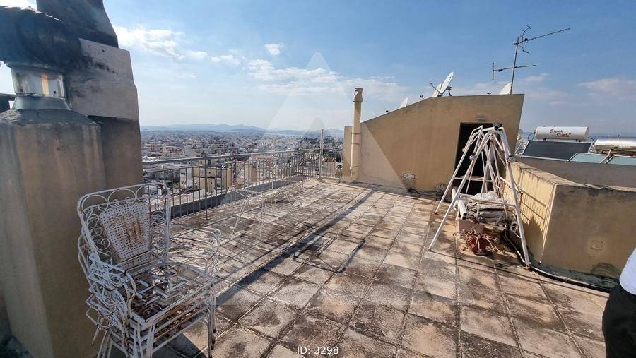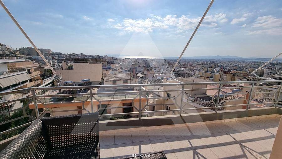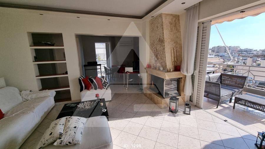 Agios Dimitrios (Attica - Southern Suburbs) - Apartment 85sqm bedrooms 2, levels 1, 4th, penthouse, excellent condition, year built 2002, energy class C, living room, kitchen, bathroom, heating type: autonomous (oil), air condition, parking ground floor, quiet, dual aspect apartment, luminous, corner, unobstructed view, frontage, painted, drop ceiling, storage space, solar heater, boiler, fireplace, balconies, large balconies, tents, elevator, loft storage, garden, private terrace, terrace 90sqm, built in appliances, aluminum frames, double glazed windows, ceramic tiles floors, three phase electricity, night electricity discount rate, secure door, alarm, video doorbell, satellite, pets allowed, residential zone, access from asphalt.