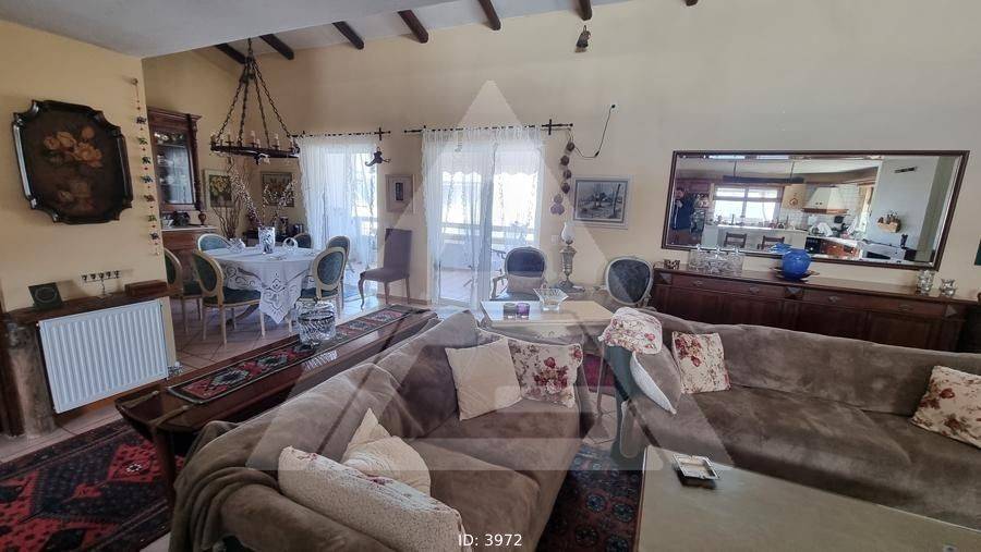 Halandri - Apartment 157sqm bedrooms 2, levels 1, 4th, penthouse, excellent condition, year built 1995, renovation year 1998, energy class C, living room, hall, kitchen, 2 bathrooms, heating type: autonomous (oil), air condition, parking ground floor, quiet, dual aspect apartment, luminous, unobstructed view, frontage, painted, storage space 7sqm, solar heater, boiler, fireplace, balconies, large balconies, tents, elevator, garden, private terrace, built in appliances, aluminum frames, double glazed windows, door screen, wood & tile floors, handicap ramp, office, secure door, alarm, luxurious, barbeque, satellite, pets allowed, residential zone, access from asphalt.