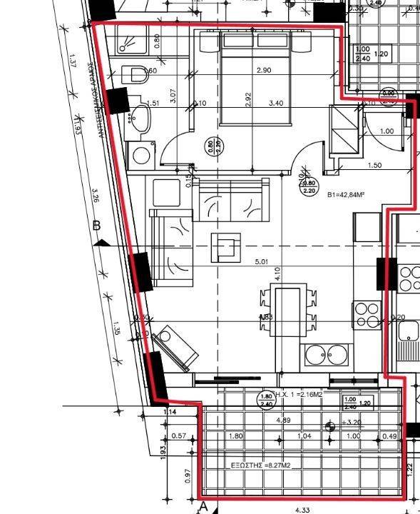 Modern Apartment in Chania Center This new development in the heart of the city offers an excellent opportunity for either a permanent home or a high-yield investment. The apartment (A1) is currently under construction with delivery scheduled for 2027, blending modern design with a prime location. The property measures 42.84 m² on the 1st floor and consists of one bedroom, an open-plan living-kitchen area, and a bathroom. It features a spacious 10.4 m² balcony, a heat pump for cooling and heating, a solar water heater, and holds an Energy Class A rating. Located just 120 m from 1866 Square, it provides immediate access to the entire Chania market. The harbor is 500 m away, Chania airport is 14 km away, and all essential amenities like pharmacies and supermarkets are within a 2-minute walk. Furthermore, the Nea Chora beach is just 800m. away from the apartment. Available apartments in the building: A3 1st floor, 45.35 m², at 208,700 euro B1 2nd floor, 42.84 m², at 201,400 euro D1+P7 (Parking) 4th floor, 42.84 m², at 239,800 euro D2 4th floor, 41.57 m², at 203,700 euro
