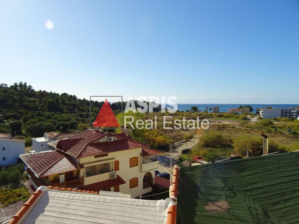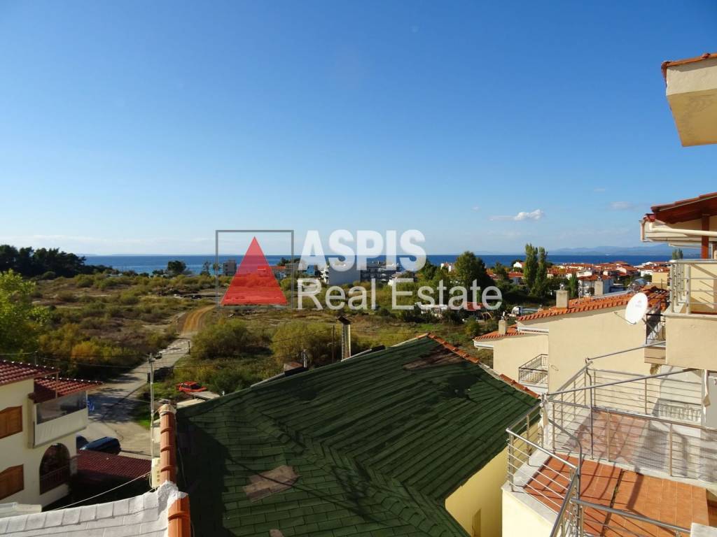 Maisonette of 86 sq.m. for sale, in Neos Marmaras, Halkidiki, 400 meters from the sea. It is a front, airy, very bright maisonette, extending over the 1st and 2nd floors. It consists of 2 bedrooms, living room, kitchen, bathroom, and balconies. It has a fireplace, synthetic frames, view and free space for parking. It is an ideal choice for a holiday home, but can also be used as an investment.