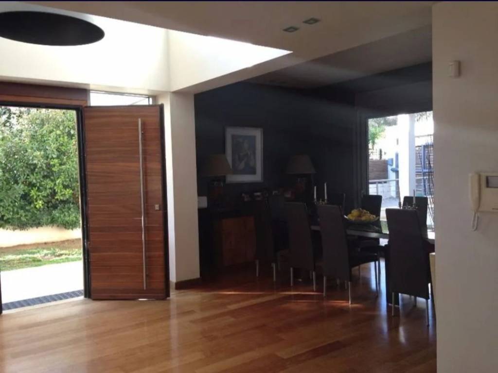 Villa de luxe minimaliste au cœur de Varkiza Au cœur de Varkiza, dans un quartier composé de villas de luxe haut de gamme, une impressionnante maison individuelle à l’architecture moderne et au design minimaliste est proposée à la vente, avec un grand jardin et une piscine privée. La résidence est développée sur trois niveaux, offrant confort, fonctionnalité et qualité de construction élevée. Au rez-de-chaussée, on trouve un vaste séjour avec cheminée et de grandes baies vitrées ouvrant directement sur l’espace extérieur et la piscine (25 m²). À ce même niveau se trouvent une cuisine indépendante avec appareils électroménagers intégrés ainsi qu’un WC invités. Un escalier en bois mène au premier étage, où se situent trois chambres spacieuses, dont une suite parentale avec salle de bains privative, ainsi que deux salles de bains supplémentaires. Le niveau du playroom comprend un second salon avec cheminée, une chambre de service, une chambre d’amis avec salle de bains, une buanderie, un espace salle de sport et bureau, ainsi qu’un WC supplémentaire, offrant une totale autonomie et de multiples possibilités d’aménagement. Tous les niveaux sont desservis par un ascenseur intérieur. Le bien dispose également d’un parking fermé, d’un ascenseur, d’un espace de stockage, d’un jardin, d’un chauffage au sol autonome, d’une piscine, d’un système d’alarme et d’un système de climatisation centralisée.